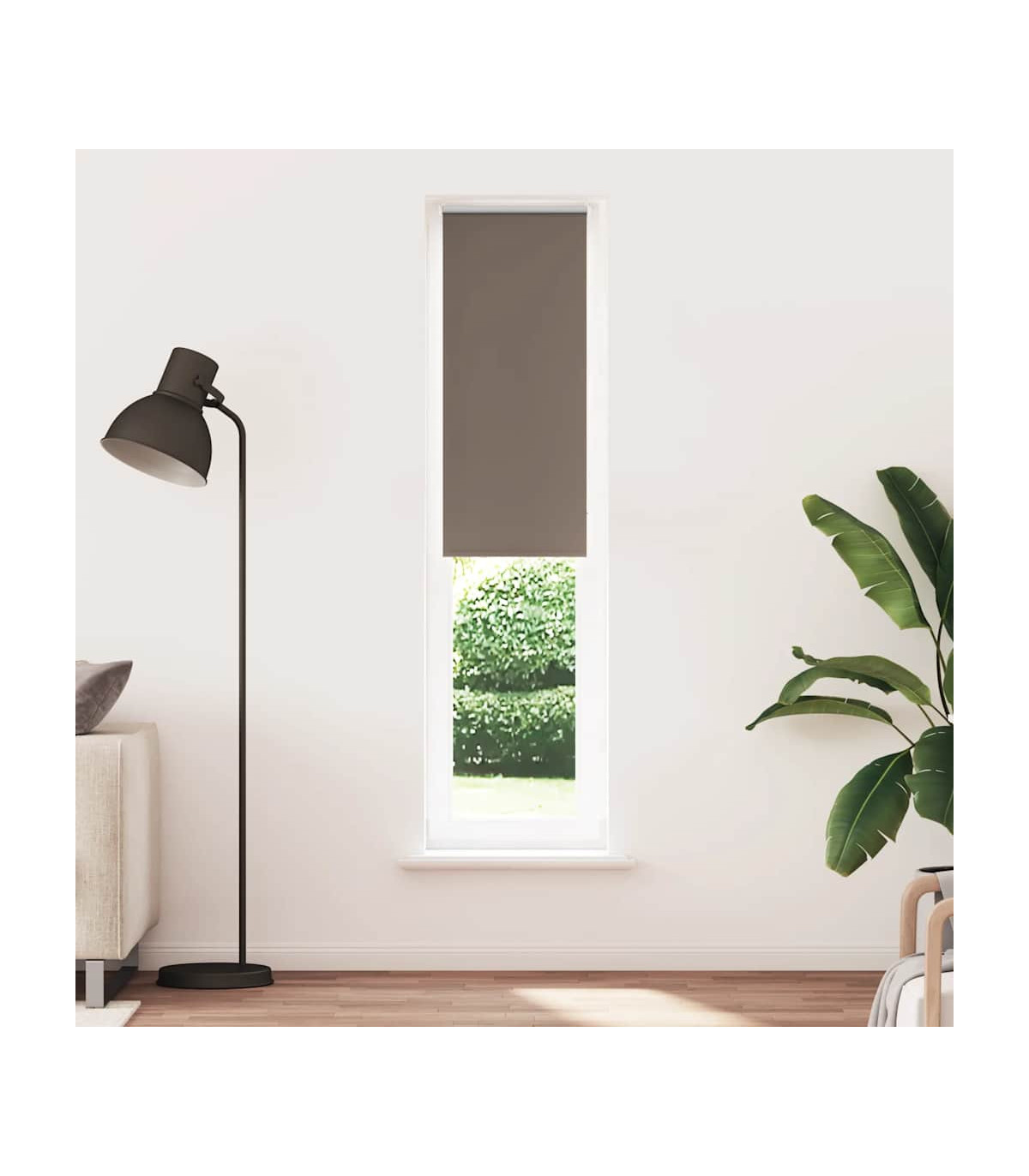 Elevate your room's style and functionality with this roller blind, providing privacy, light control, and heat regulation. Durable and low maintenance: Made from 100% polyester, the roller blind is built to last and resist wear and tear. They are also easy to clean, typically requiring light dusting or wiping with a damp cloth.Privacy and light control: Thanks to the blackout design, this roller blind provides privacy and partially blocks direct sunlight so that you can regulate the indoor temperature according to your needs.Multiple mounting methods: You can attach the roller blind to the wall or window with screws or without drilling using clamping brackets, depending on your needs. Clamping brackets for window frame rebate thickness between 1,6 and 2,5 cm.Child safety and adjustability: The roller blind includes a chain connector that makes it easy to adjust the height according to your needs, and it also has a cord clip to add child safety.Wide applications: This versatile roller blind is suitable for homes, offices, cafes, office buildings, and so on. Warning: Keep cords out of the reach of young children. Cords may become wrapped around a child’s neck. Good to know:Before buying blinds, start by measuring your window glass. Just a friendly tip: the fabric is a bit narrower than the total width, including the brackets.To make sure your new blinds provide complete coverage, just add 4,3 cm to the width of the window glass when calculating what to order.