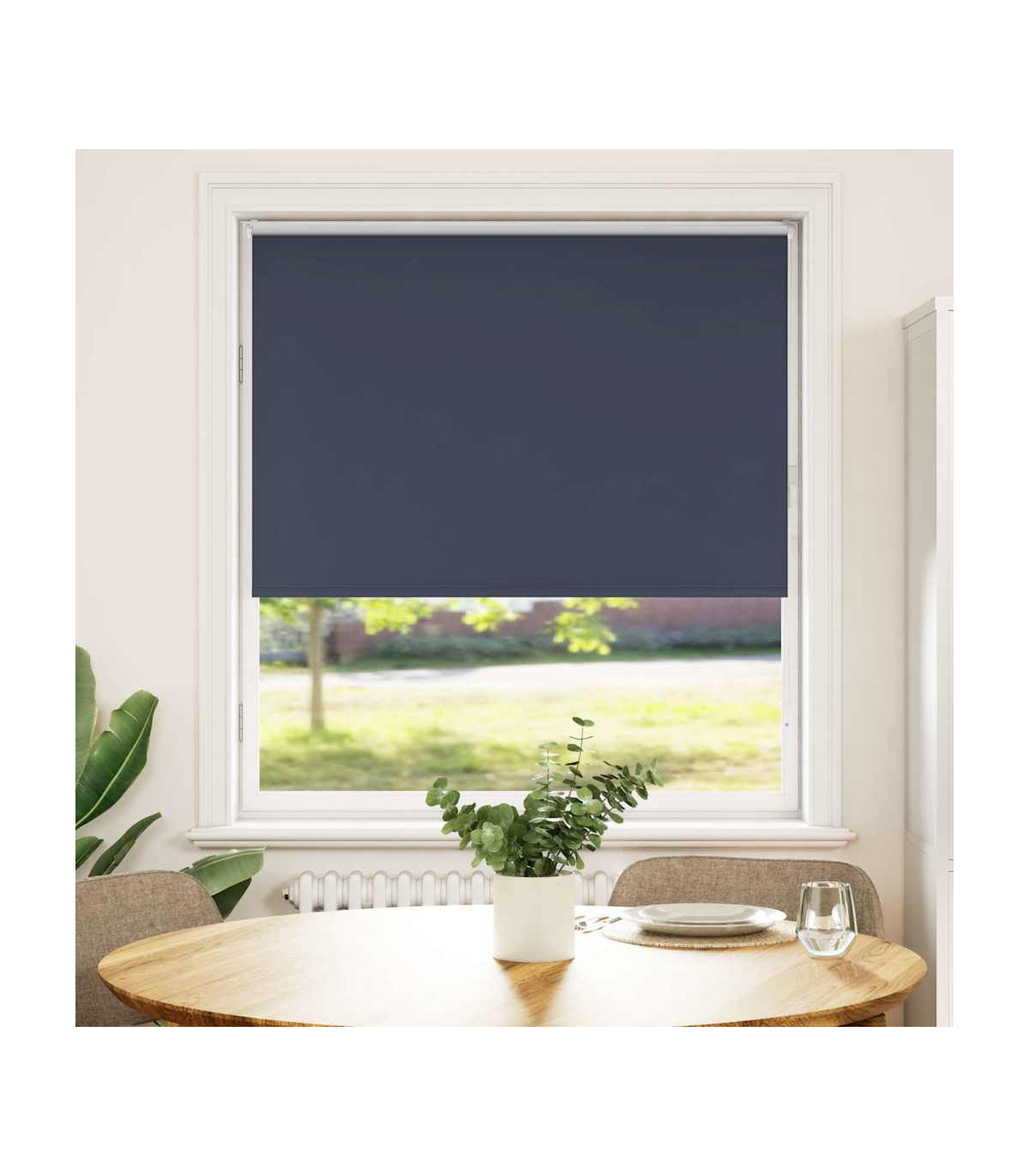 Elevate your room's style and functionality with this roller blind, providing privacy, light control, and heat regulation. Durable and low maintenance: Made from 100% polyester, the roller blind is built to last and resist wear and tear. They are also easy to clean, typically requiring light dusting or wiping with a damp cloth.Privacy and light control: Thanks to the blackout design, this roller blind provides privacy and partially blocks direct sunlight so that you can regulate the indoor temperature according to your needs.Multiple mounting methods: You can attach the roller blind to the wall or window with screws or without drilling using clamping brackets, depending on your needs. Clamping brackets for window frame rebate thickness between 1,6 and 2,5 cm.Child safety and adjustability: The roller blind includes a chain connector that makes it easy to adjust the height according to your needs, and it also has a cord clip to add child safety.Wide applications: This versatile roller blind is suitable for homes, offices, cafes, office buildings, and so on. Warning: Keep cords out of the reach of young children. Cords may become wrapped around a child’s neck. Good to know:Before buying blinds, start by measuring your window glass. Just a friendly tip: the fabric is a bit narrower than the total width, including the brackets.To make sure your new blinds provide complete coverage, just add 4,3 cm to the width of the window glass when calculating what to order.