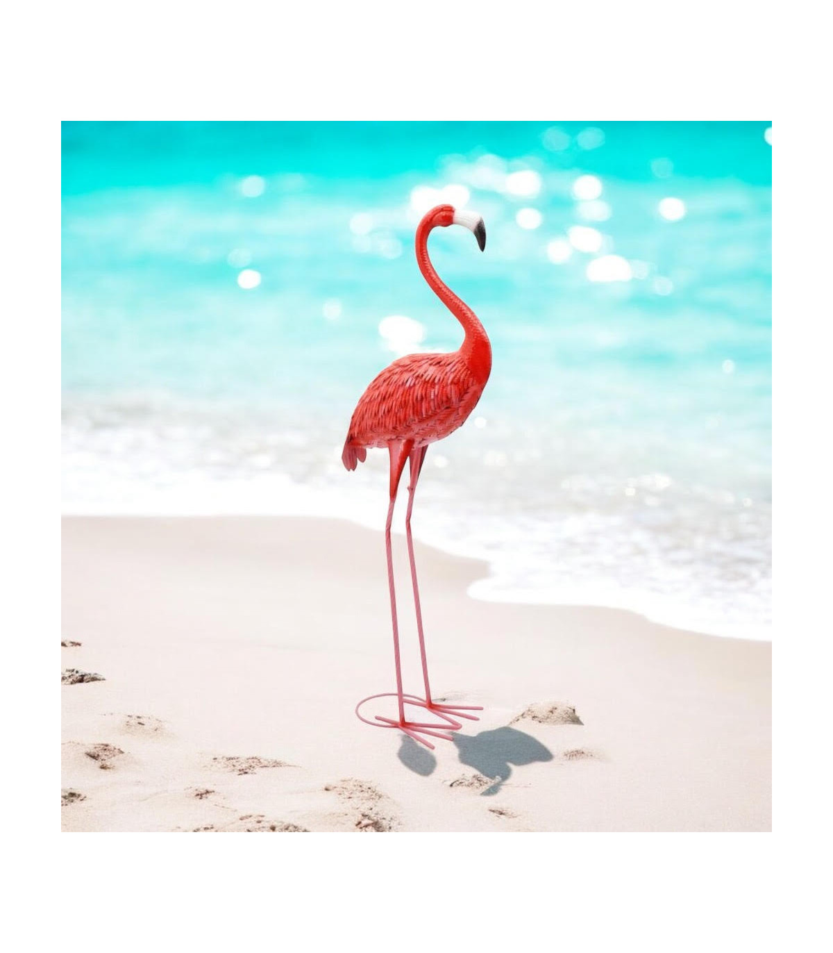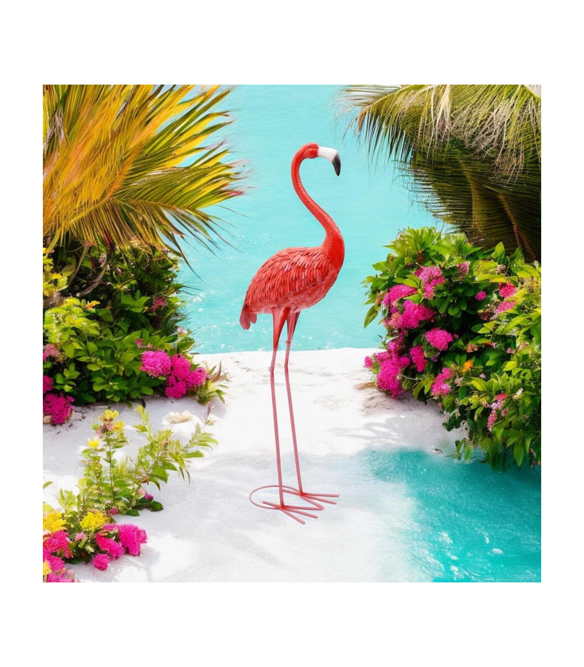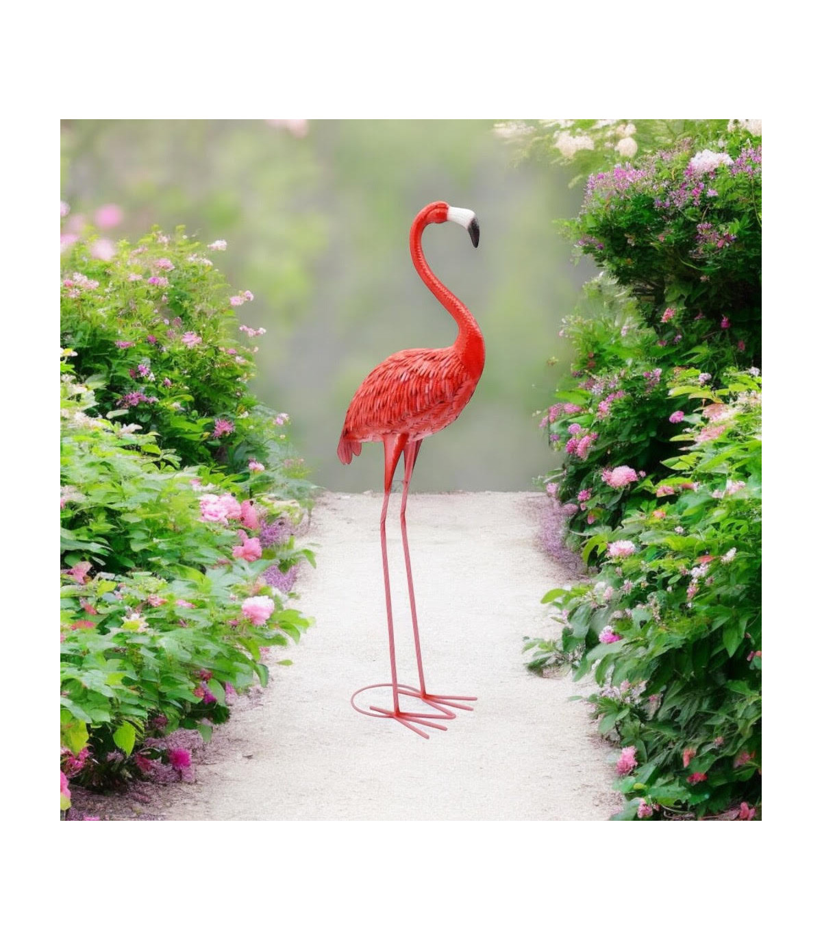 Add a splash of color and whimsy to your outdoor space with our delightful Metal Pink Flamingo