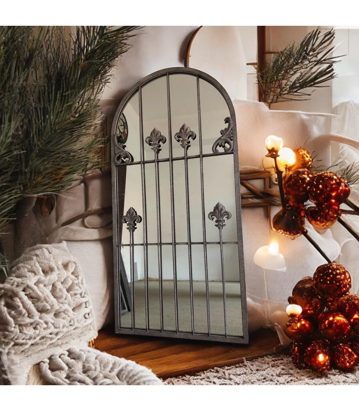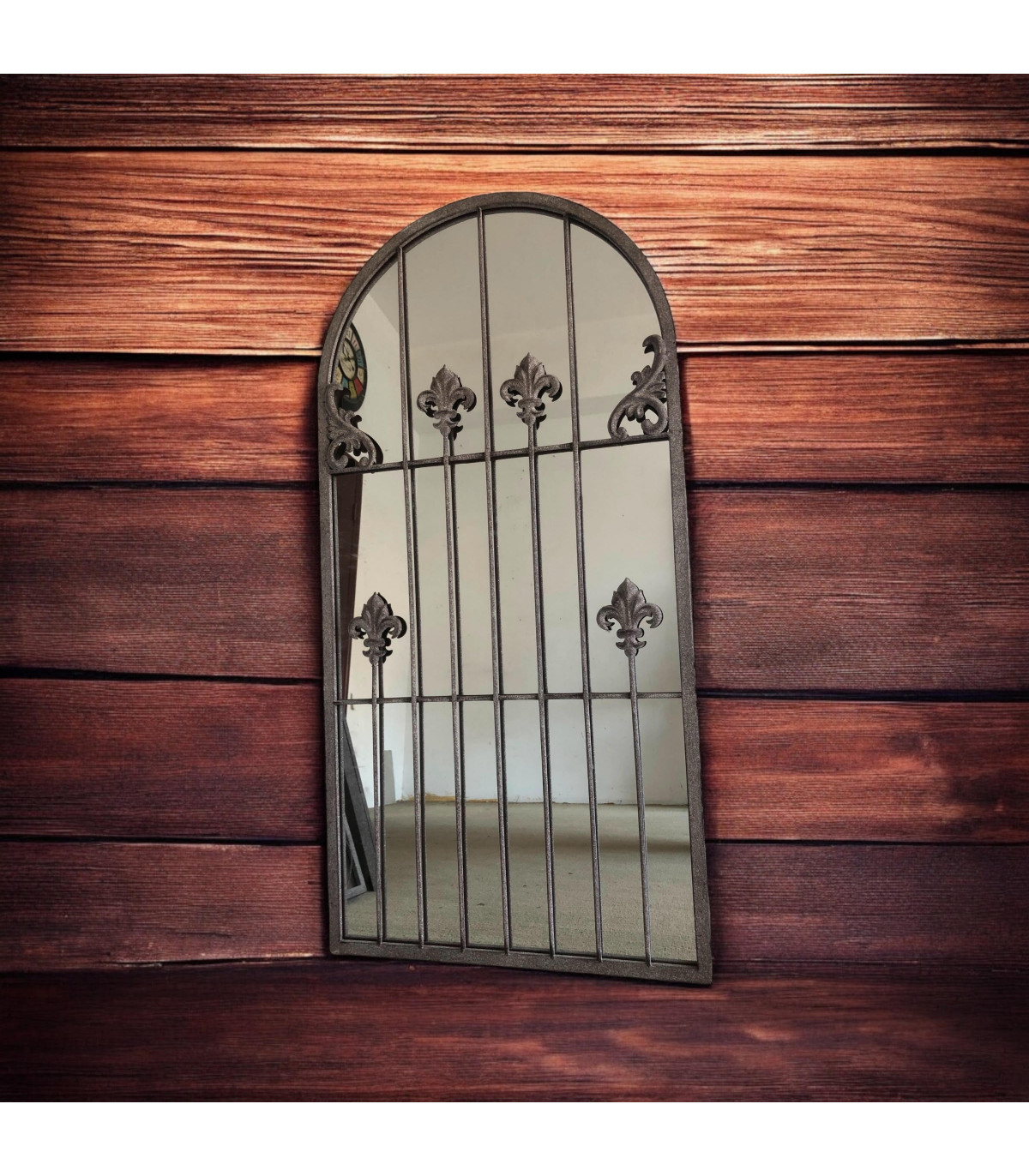 This metal window outdoor mirror is the perfect decorative garden accessory to bring some vintage character to your outdoor space., Indoor or outdoor useHanging hook on back