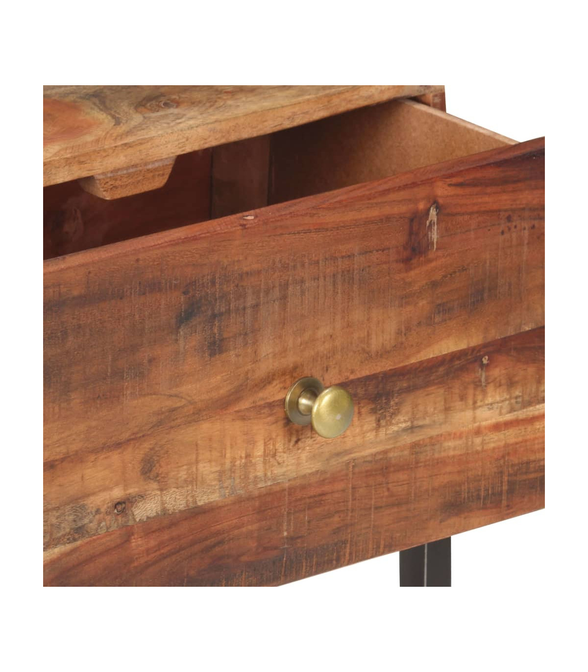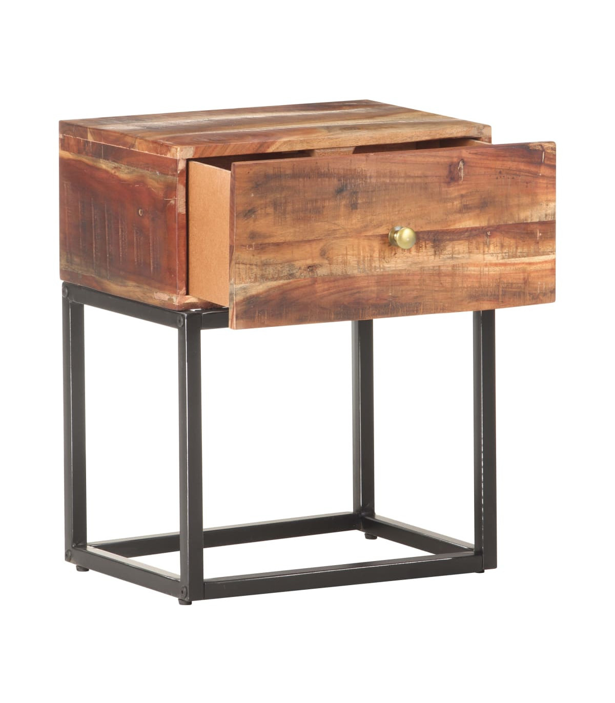 - Material: Rough acacia wood with a natural finish, iron with a black distressed finish