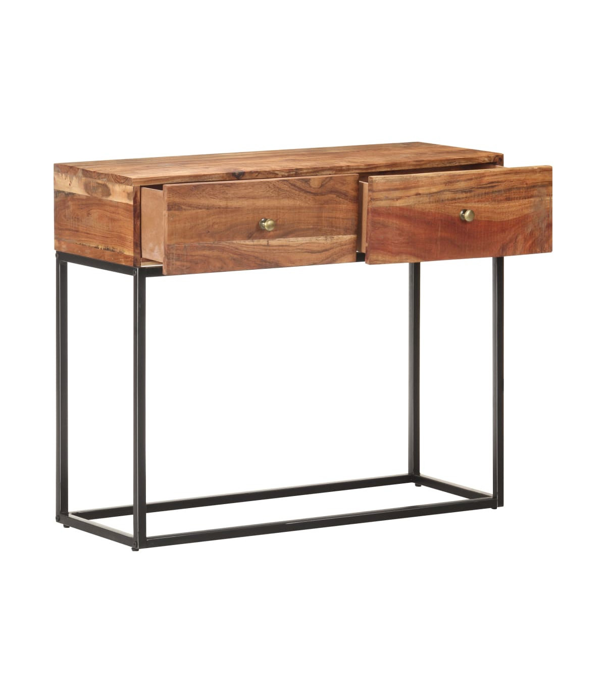 - Material: Rough acacia wood with a natural finish, iron with a black distressed finish