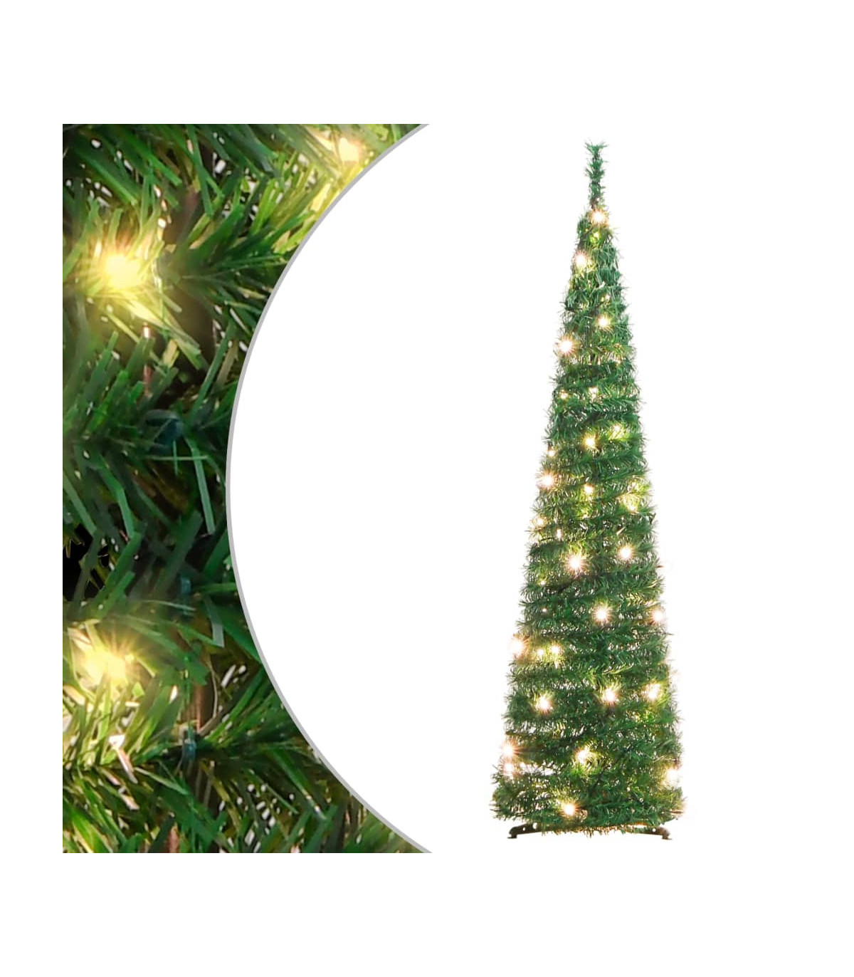 This beautiful artificial Christmas tree is very lifelike in its shape and appearance and is meant to create just the right atmosphere for this Christmas. 8 lighting modes: The Christmas tree has 8 different lighting effects (combination, in wave, sequential, slow glow, chasing/running water, slow fade, twinkle/flash, and steady on). You can switch the lighting modes by pressing the button on the USB to create different holiday atmospheres.Lifelike material: The Christmas decoration has realistic PVC tips, making the tree lifelike in its shape and appearance.Sturdy stand: The metal stand provides your Xmas tree with optimal sturdiness and stability.Economical choice: You can reuse the Christmas ornament every year, which is a cost-effective option compared to getting a real tree. Good to know:You can customise your Christmas tree by hanging the LED string light yourself, as they are provided separately.The product has a USB connector that requires a certified 5V USB power source (not included).Please ensure that the USB connection is plugged in a dry environment.