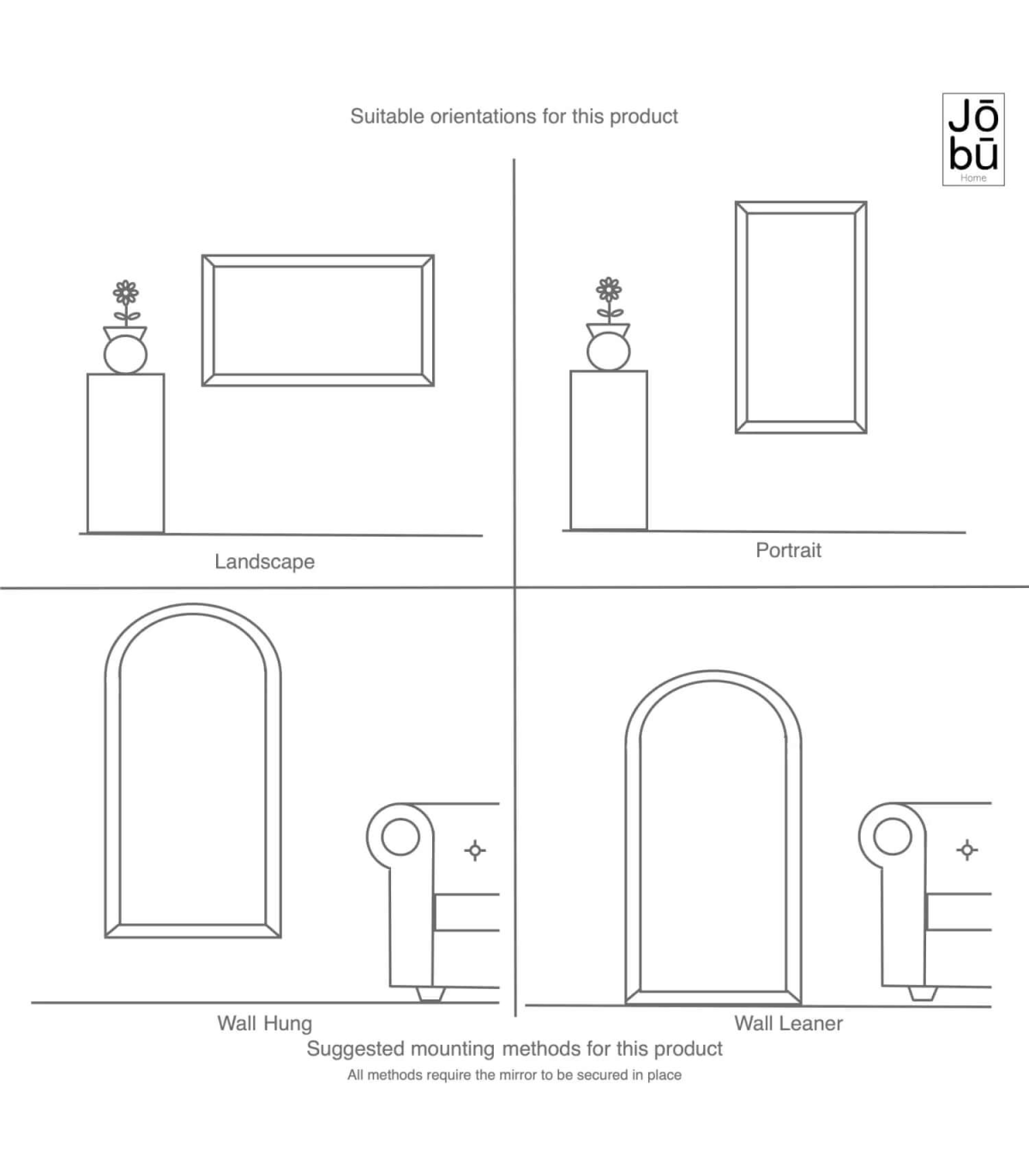 Your mirror comes complete with hooks and wall fixings, making installation straightforward whether leaning or securely mounted. The high quality of the materials and design makes it an excellent choice for both residential and commercial settings.