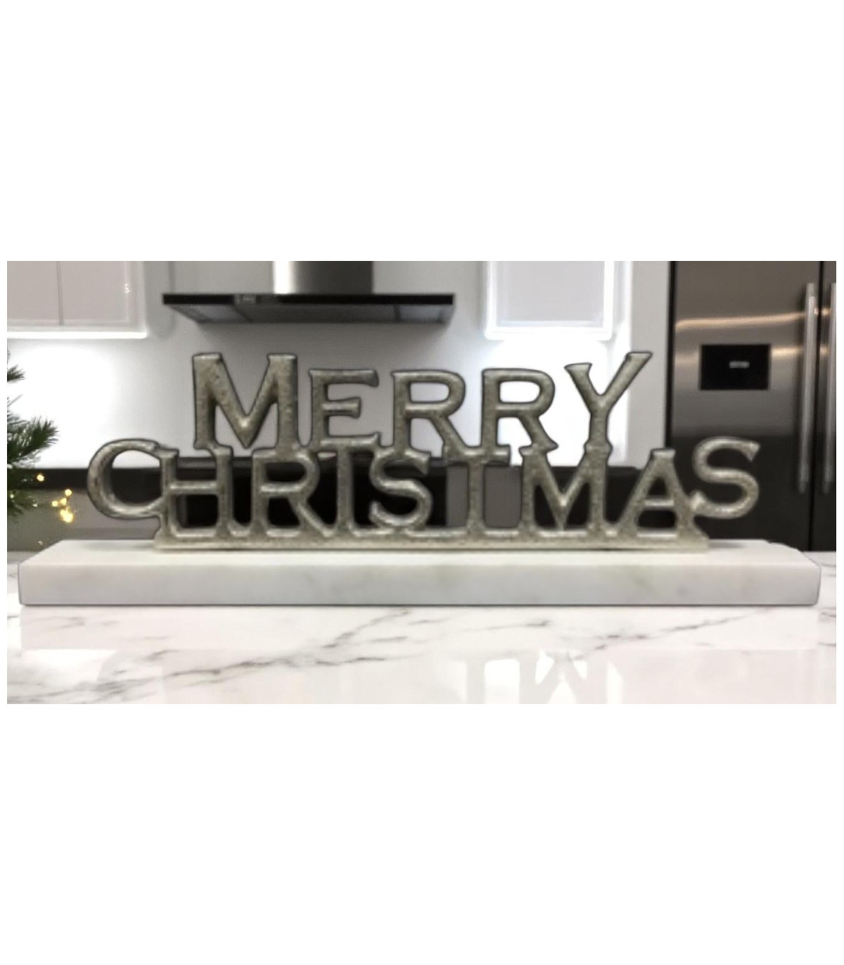 12" NICKEL PLATED MERRY CHRISTMAS ON STAND