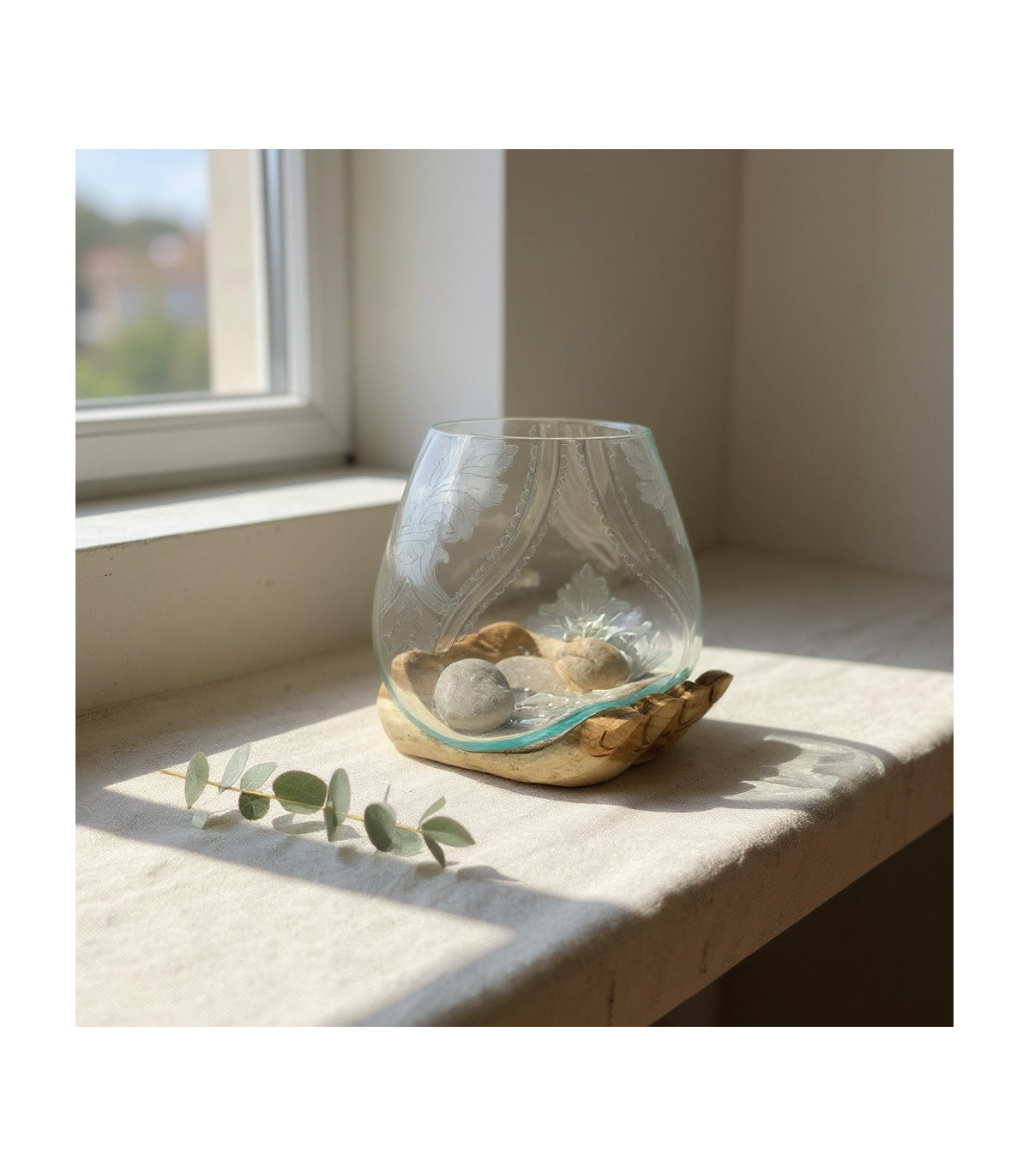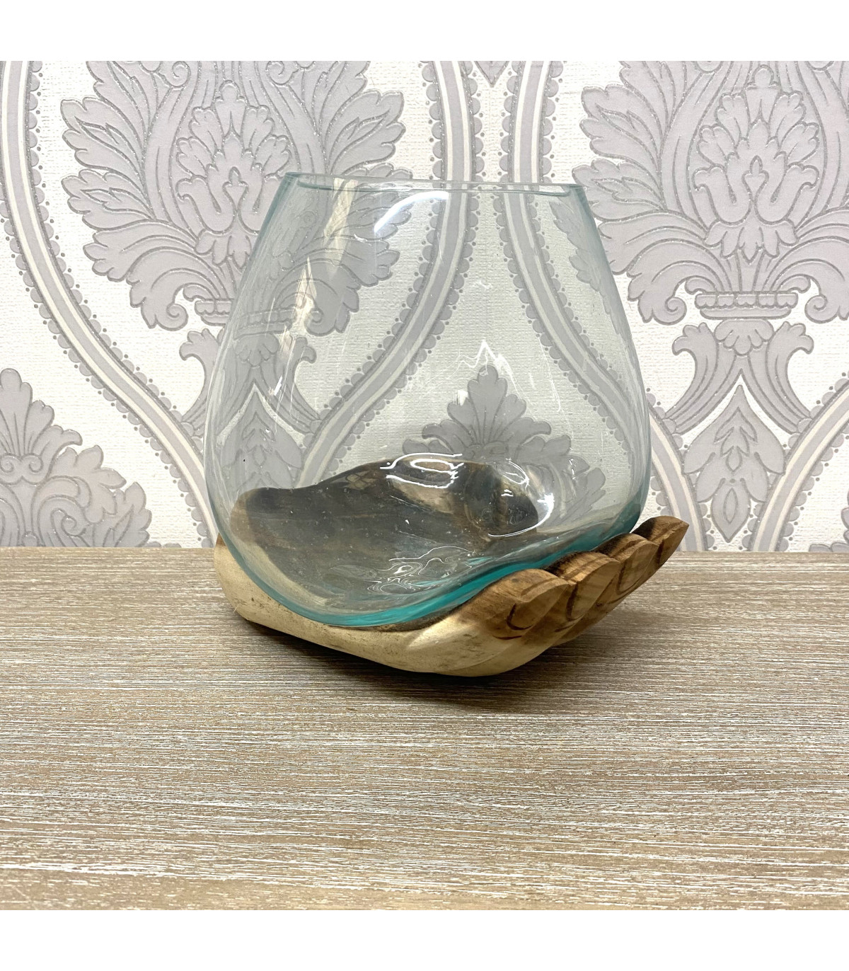 25CM TEAK ROOT HAND WITH GLASS BOWL