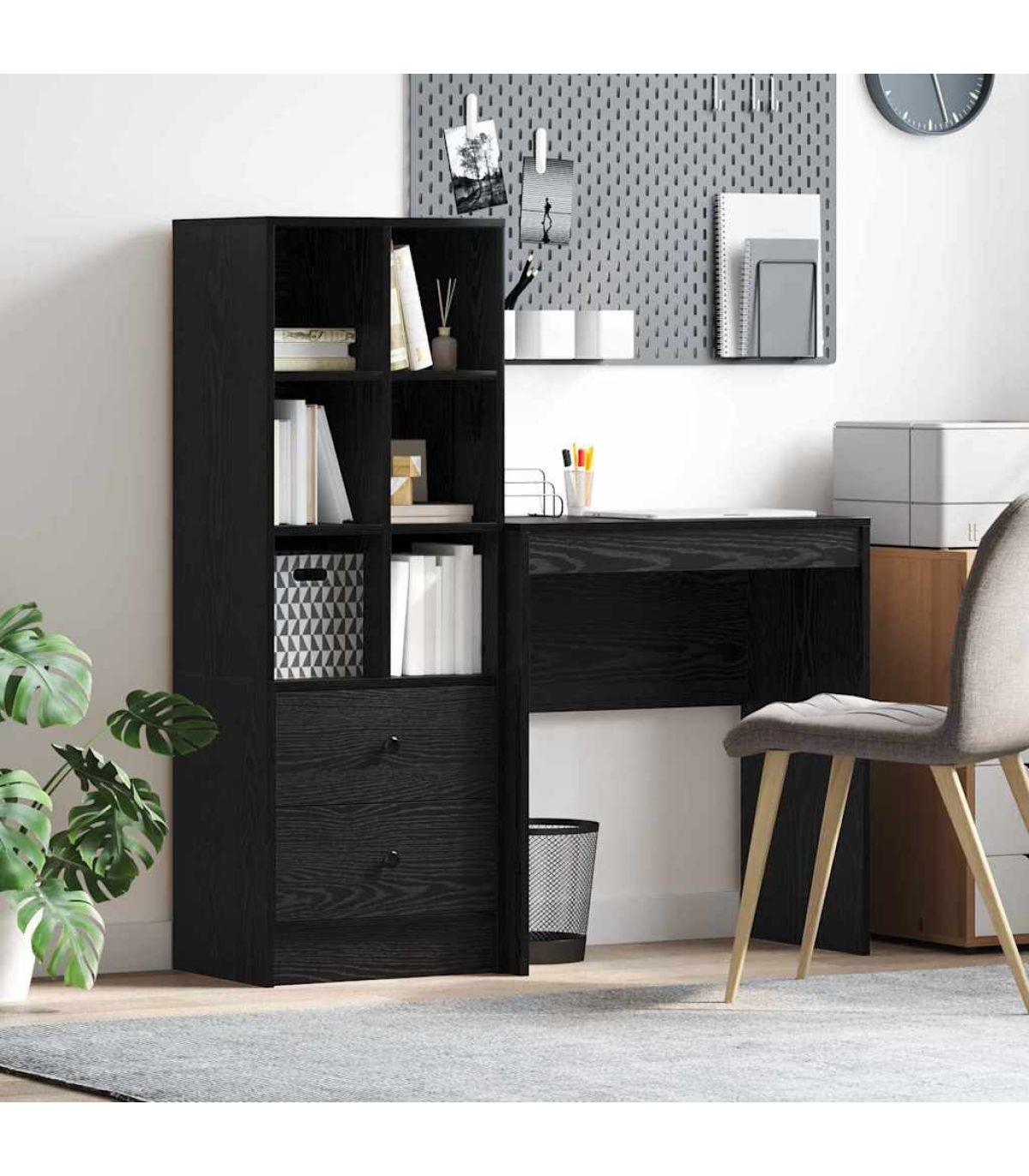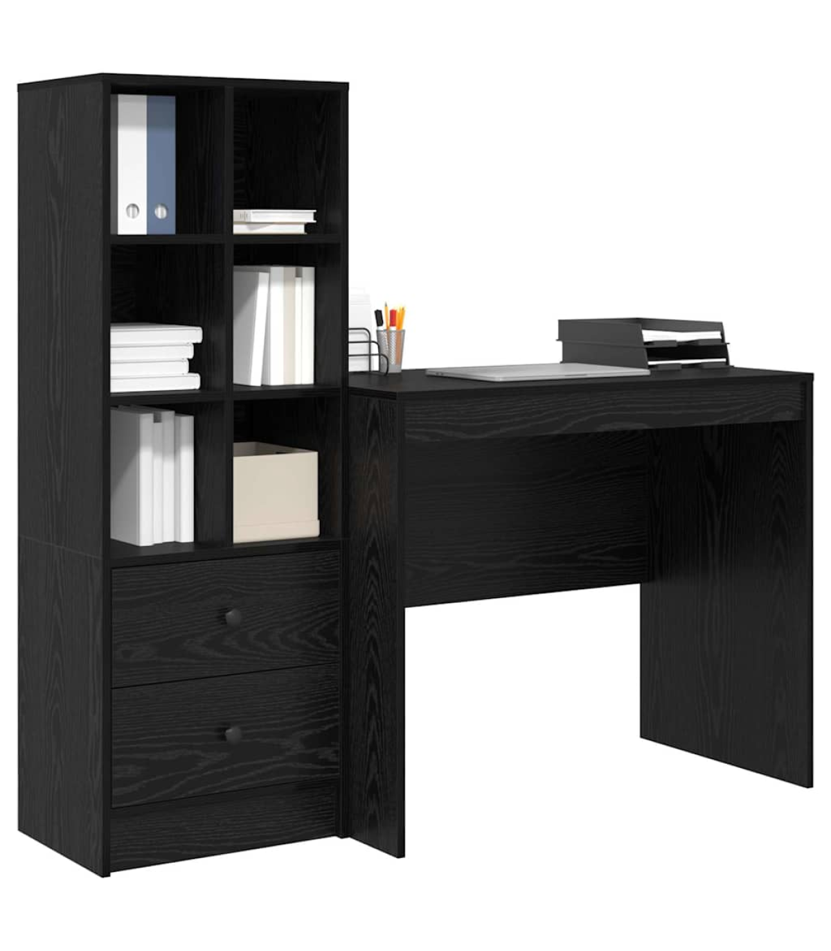 vidaXL Desk with Storage with Drawer 2 pcs Black oak 90 x 50 x 76 cm