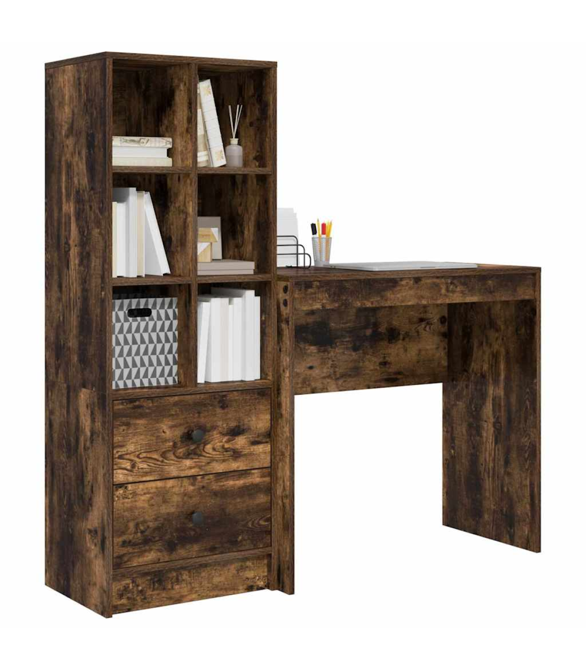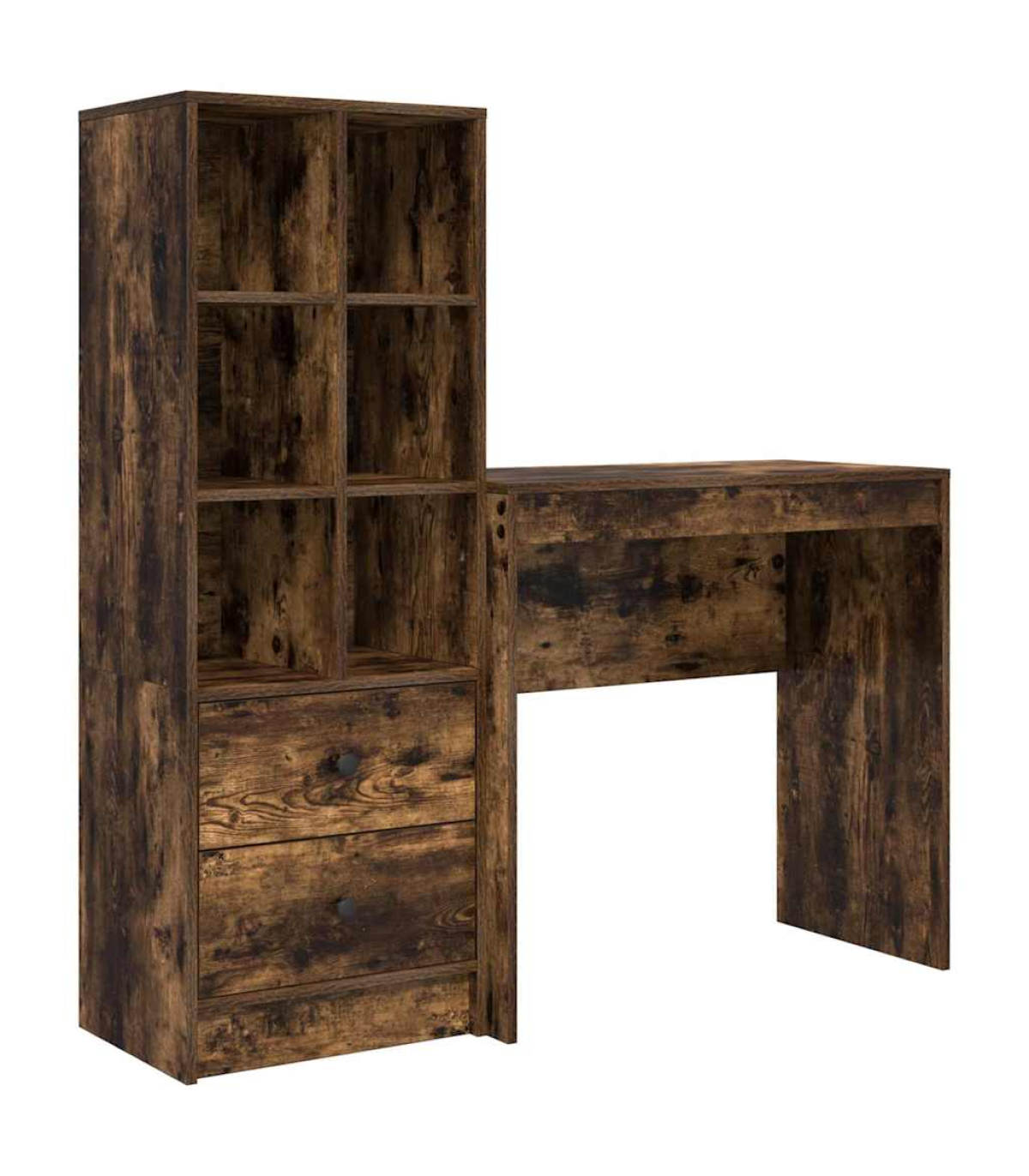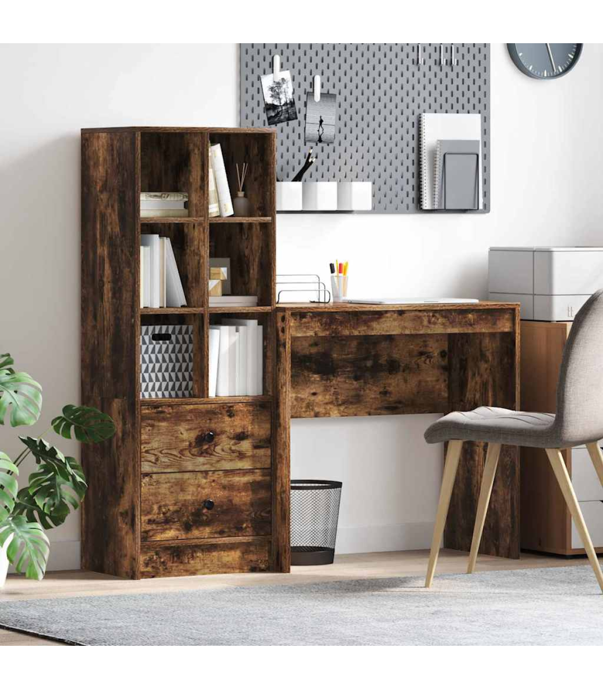 vidaXL Desk with Storage with Drawer 2 pcs Smoked Oak 80 x 40 x 76 cm