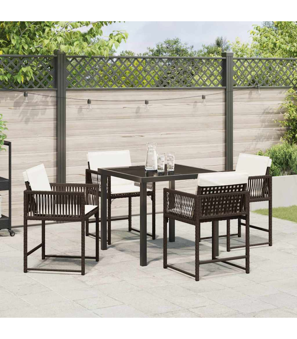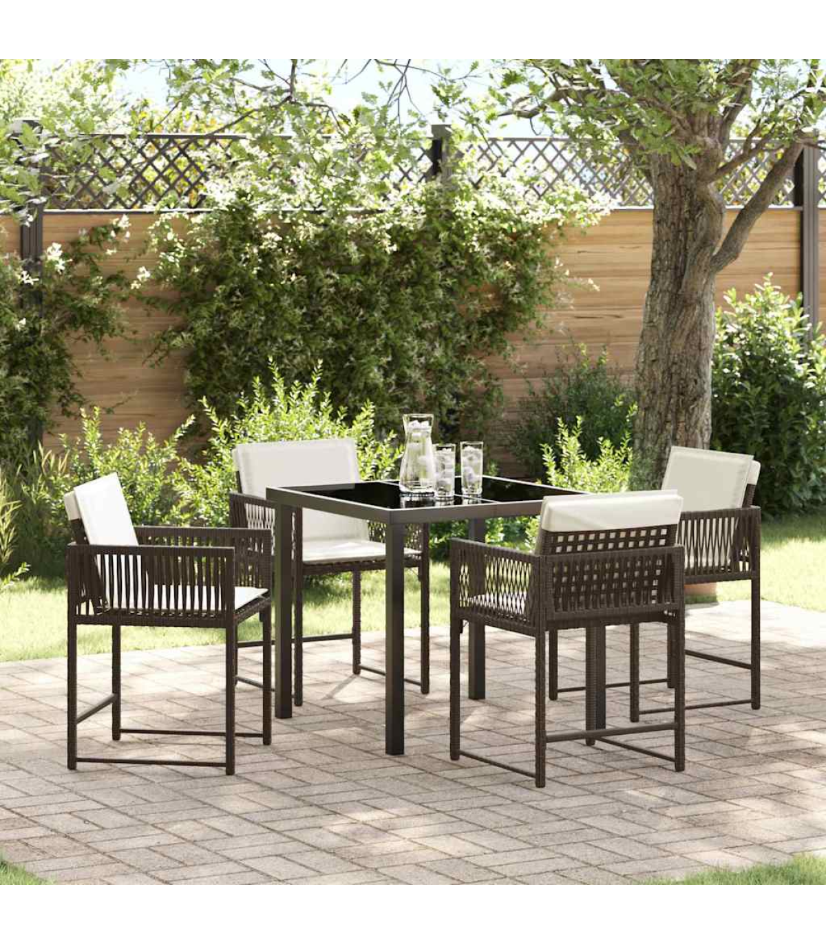 This modern garden dining set is the perfect blend of sleek design and practicality, making it a brilliant addition to any outdoor space for summer hangouts. Built for both good looks and lasting durability, this set is ideal for those who appreciate a bit of simplicity and elegance in their garden furniture. Whether you're throwing a garden party or just enjoying a meal outside, this dining set's just right for a comfy and stylish vibe. Material Composition: Made from a strong combo of poly rattan and steel, this garden set looks good and is tough. The poly rattan gives it a lovely woven finish, while the steel frame adds stability, so it won’t blow away in the wind. This smart choice of materials is both nice to look at and practical. Included Components: The dining set comes with comfy poly rattan chairs, all finished nicely so they look good from every angle in your garden. The glass-topped table gives you a smooth, striking surface that's a breeze to clean. Plus, the comfy armrests and sturdy legs make dining all the more enjoyable. Design & Features: The modern style features clean lines and minimal fuss, making it a classy choice for any garden or terrace. Built solely for outdoor use, the materials are chosen to last, ensuring it’ll stay in good shape over time. Recommended Use: This dining set is a great fit for gardens or terraces, setting the scene perfectly for casual meals or family get-togethers. Its flexibility works well for both small dinners and big celebrations, making the most of your outdoor moments. Care Instructions: To keep it looking its best, throw a cover over it when you're not using it. Since it’s outdoor gear, some simple care will help it stay pristine for years of fun in your garden.