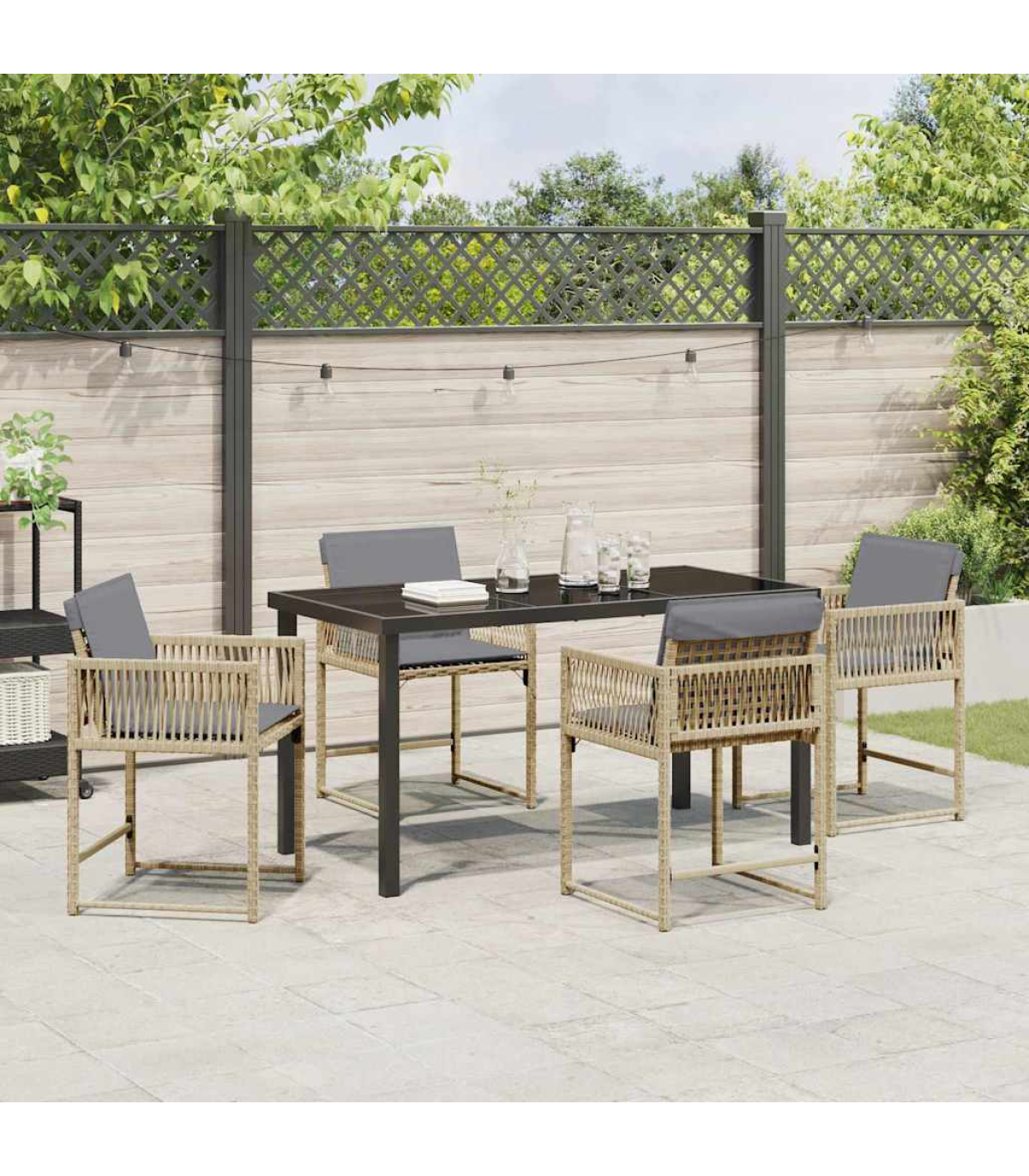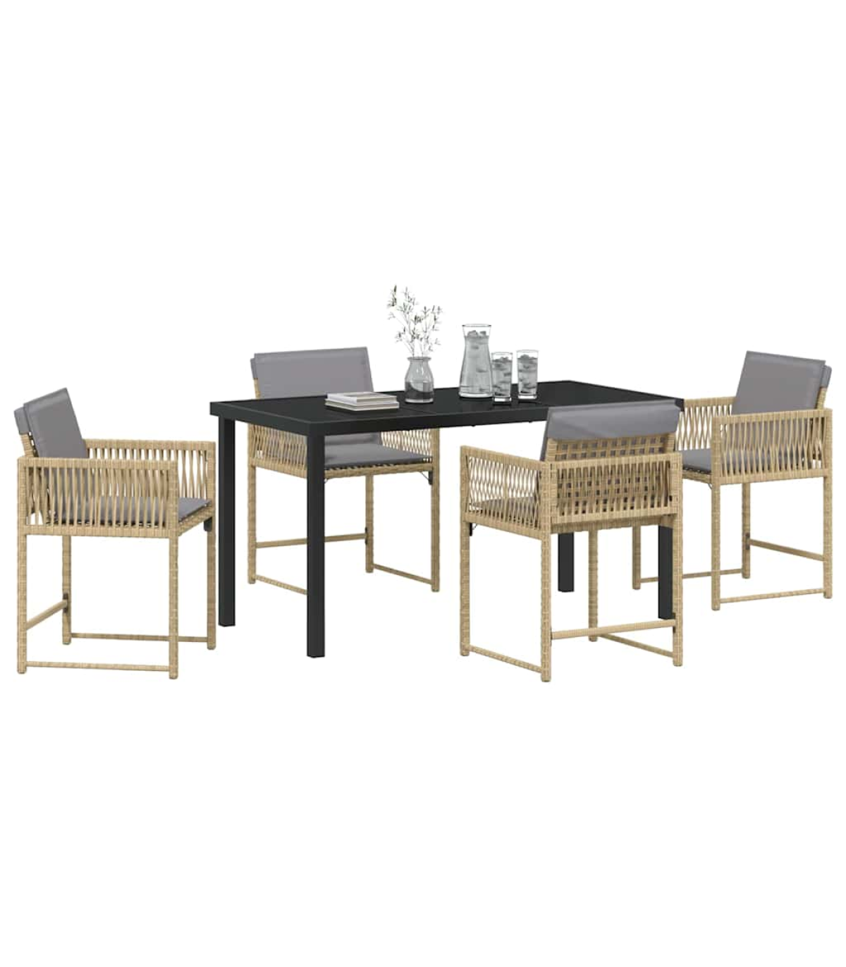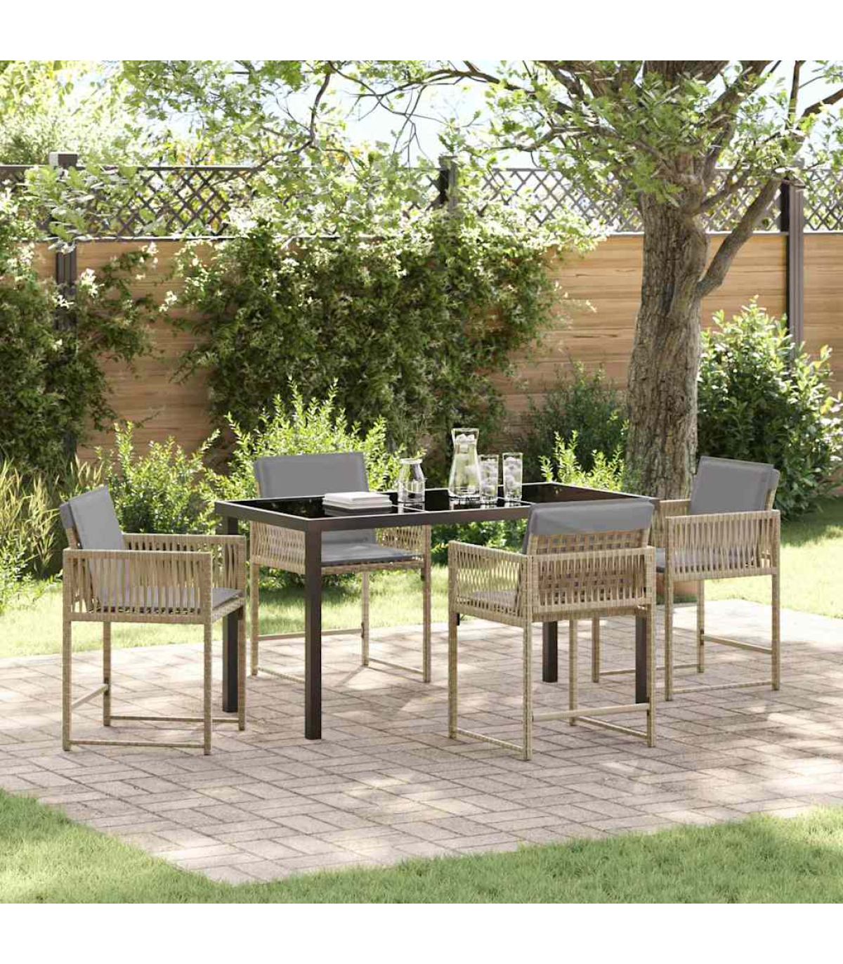 This modern garden dining set is the perfect blend of sleek design and practicality, making it a brilliant addition to any outdoor space for summer hangouts. Built for both good looks and lasting durability, this set is ideal for those who appreciate a bit of simplicity and elegance in their garden furniture. Whether you're throwing a garden party or just enjoying a meal outside, this dining set's just right for a comfy and stylish vibe. Material Composition: Made from a strong combo of poly rattan and steel, this garden set looks good and is tough. The poly rattan gives it a lovely woven finish, while the steel frame adds stability, so it won’t blow away in the wind. This smart choice of materials is both nice to look at and practical. Included Components: The dining set comes with comfy poly rattan chairs, all finished nicely so they look good from every angle in your garden. The glass-topped table gives you a smooth, striking surface that's a breeze to clean. Plus, the comfy armrests and sturdy legs make dining all the more enjoyable. Design & Features: The modern style features clean lines and minimal fuss, making it a classy choice for any garden or terrace. Built solely for outdoor use, the materials are chosen to last, ensuring it’ll stay in good shape over time. Recommended Use: This dining set is a great fit for gardens or terraces, setting the scene perfectly for casual meals or family get-togethers. Its flexibility works well for both small dinners and big celebrations, making the most of your outdoor moments. Care Instructions: To keep it looking its best, throw a cover over it when you're not using it. Since it’s outdoor gear, some simple care will help it stay pristine for years of fun in your garden.