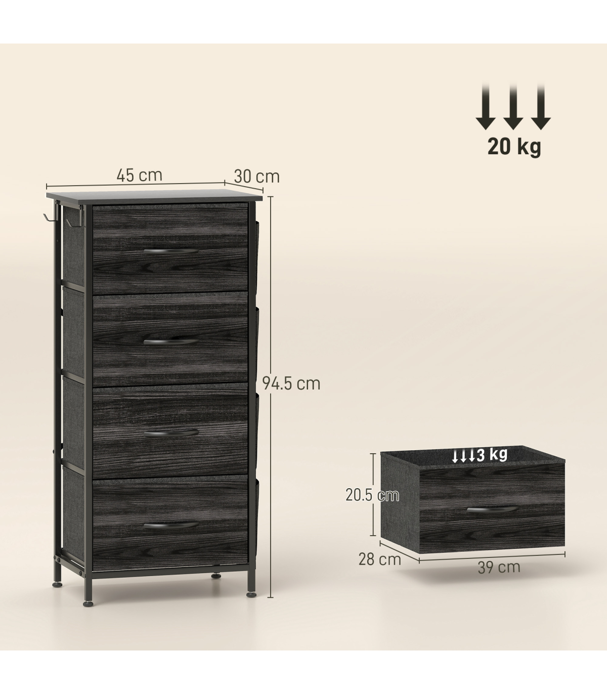 - Four equal-sized drawers: plenty of room for storing and organising clothes