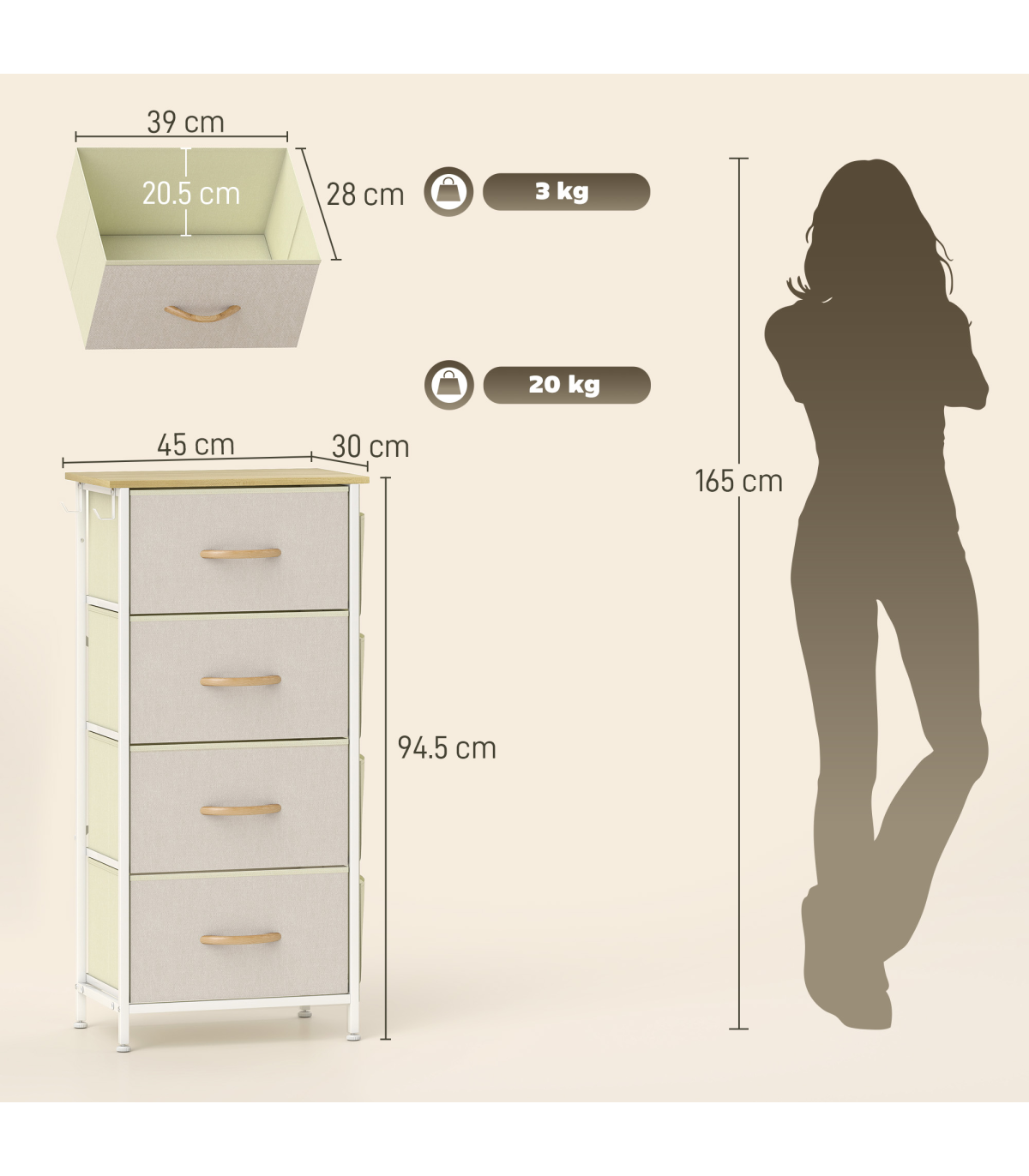 - Four equal-sized drawers: plenty of room for storing and organising clothes