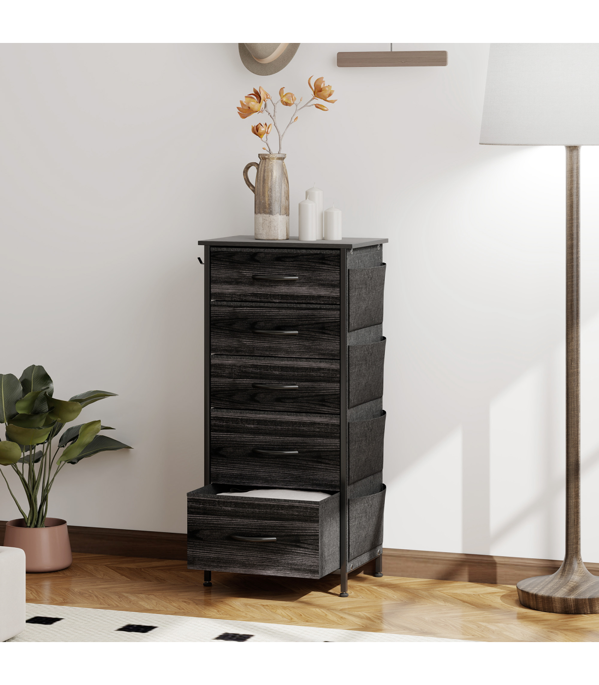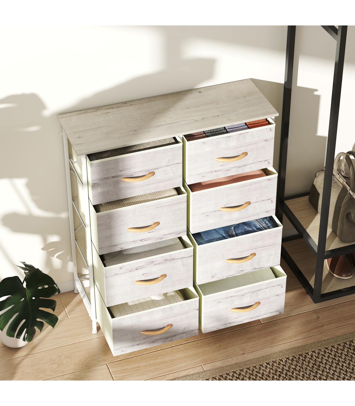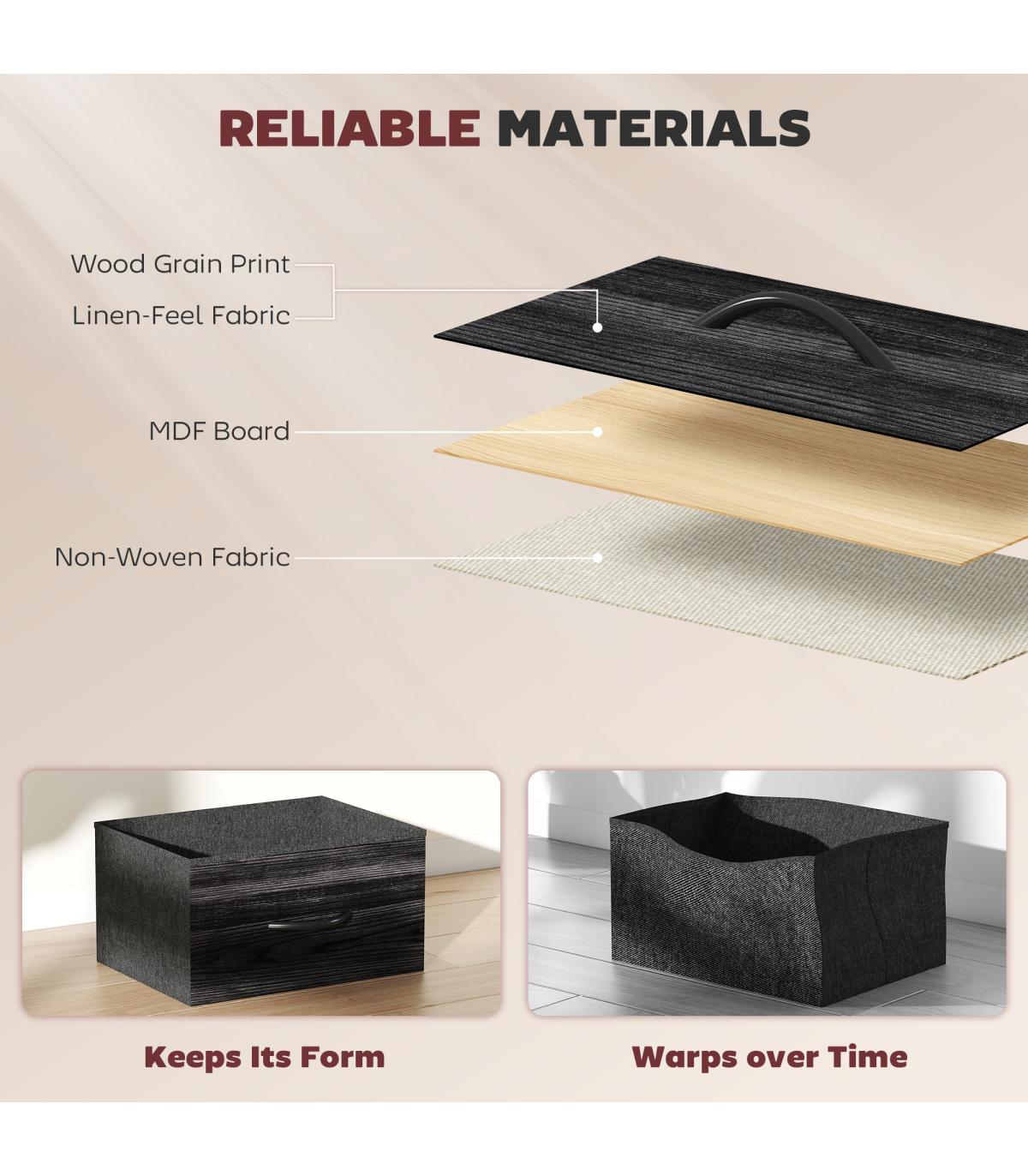 - Foldable drawers collapse flat for compact storage when not in use