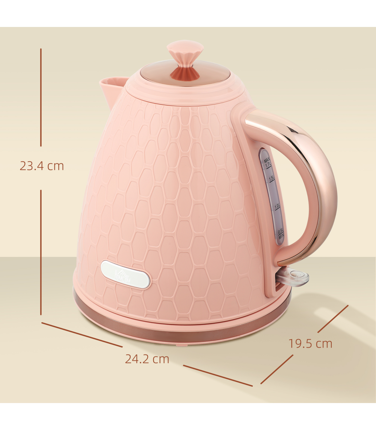 - Kettle Dimension: 24.2L x 19.5W x 23.4Hcm (with base)