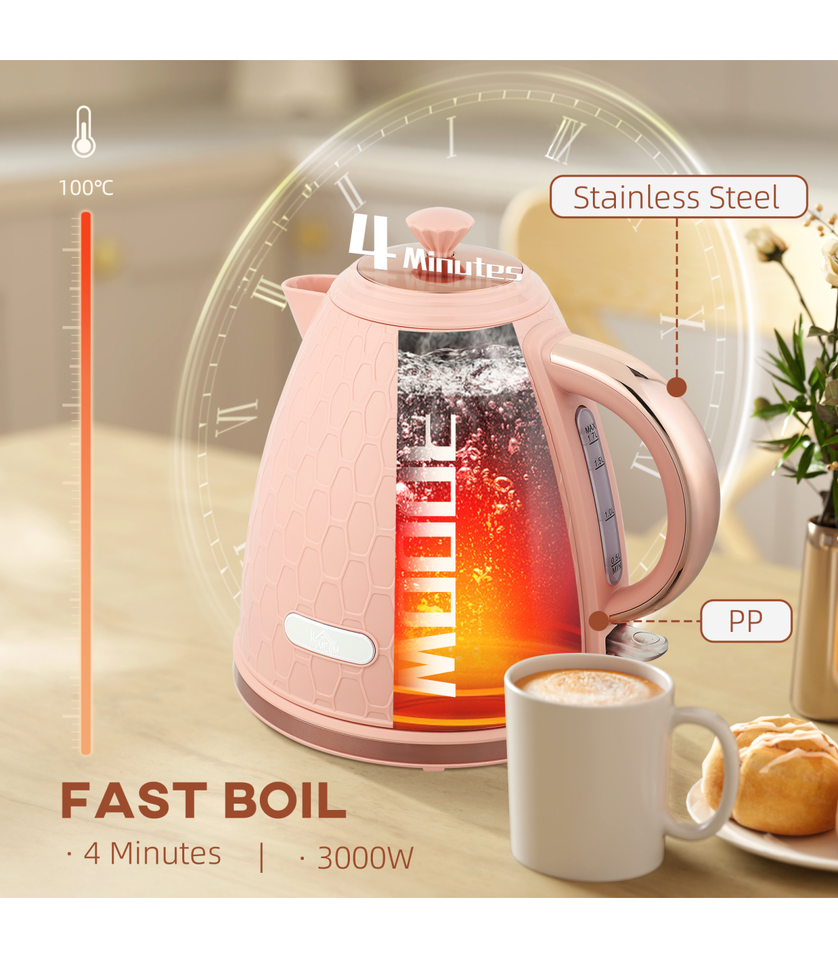 - Powerful 3000W. Single-cup boil in 42 seconds