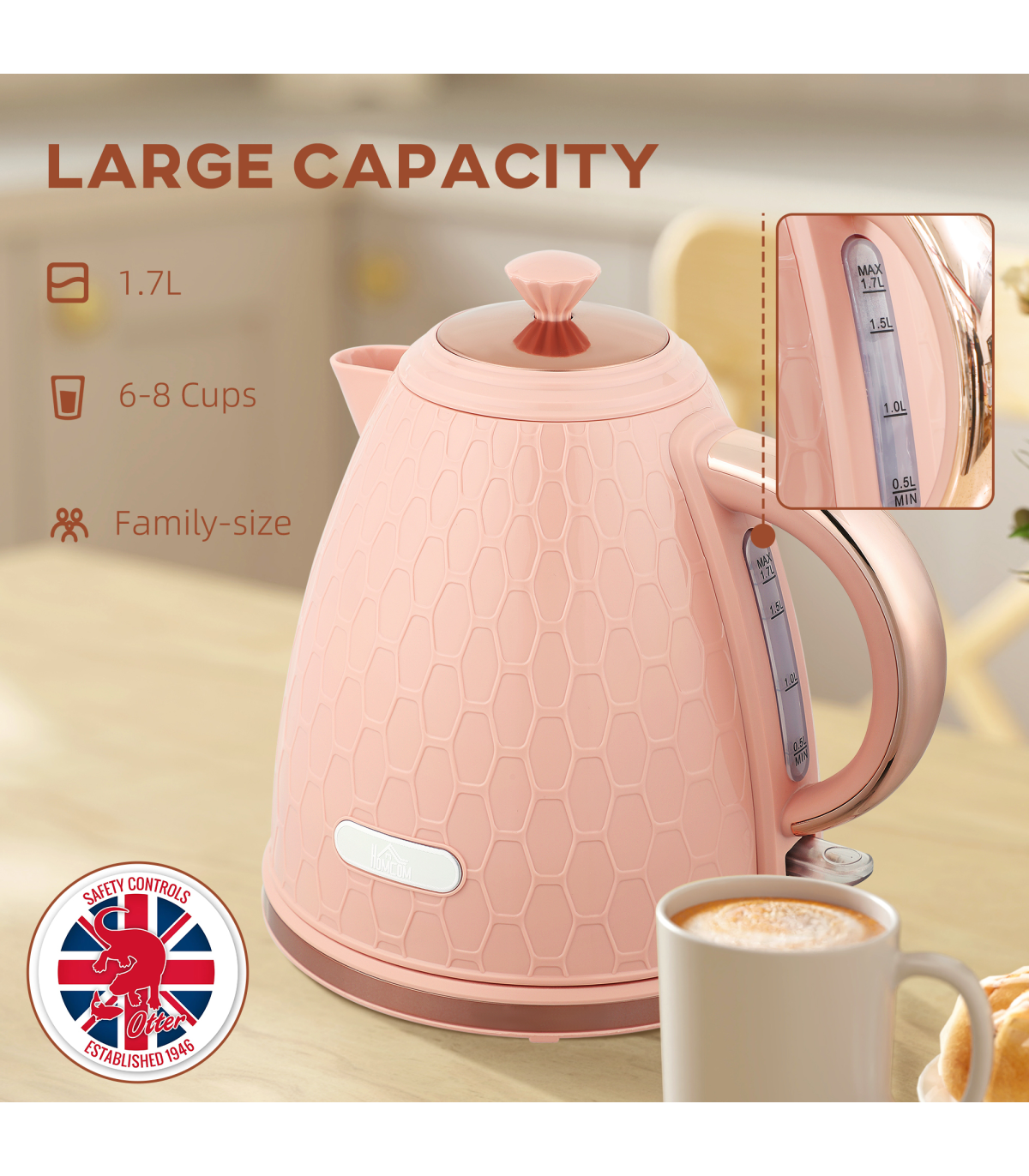 - Kettle Capacity: 1.7L(Max), 500mL(Min)