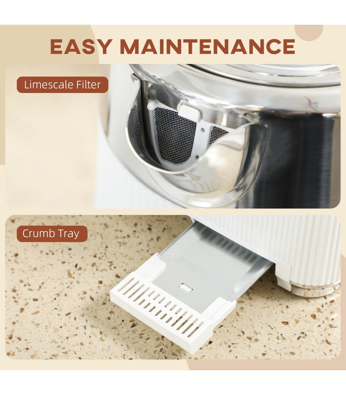 - Automatically centres bread for even toasting and pops up when done for easy, hassle-free use