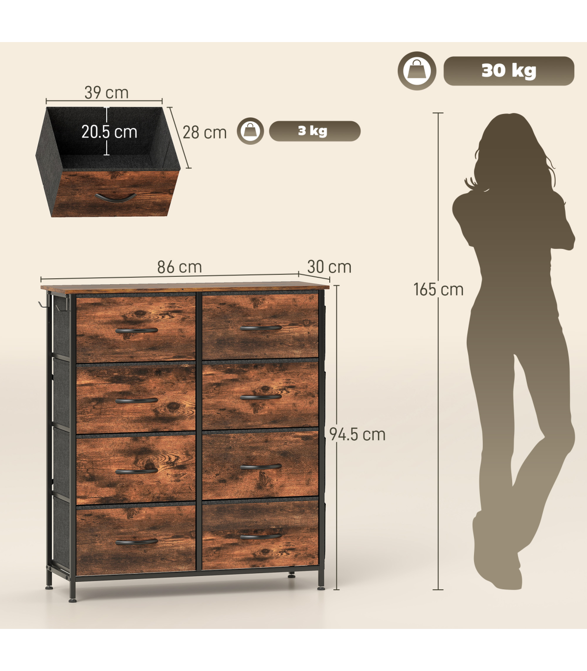 - Eight equal-sized drawers: plenty of room for storing and organising clothes