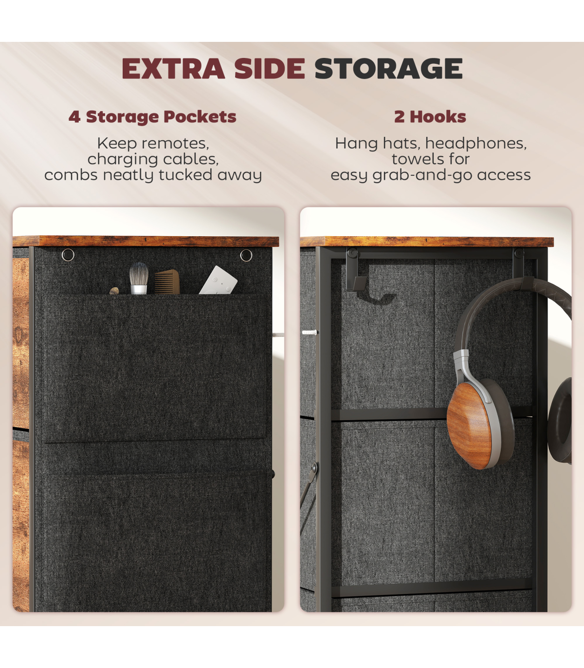 - Four side pockets and two hooks also included for extra holding and hanging room