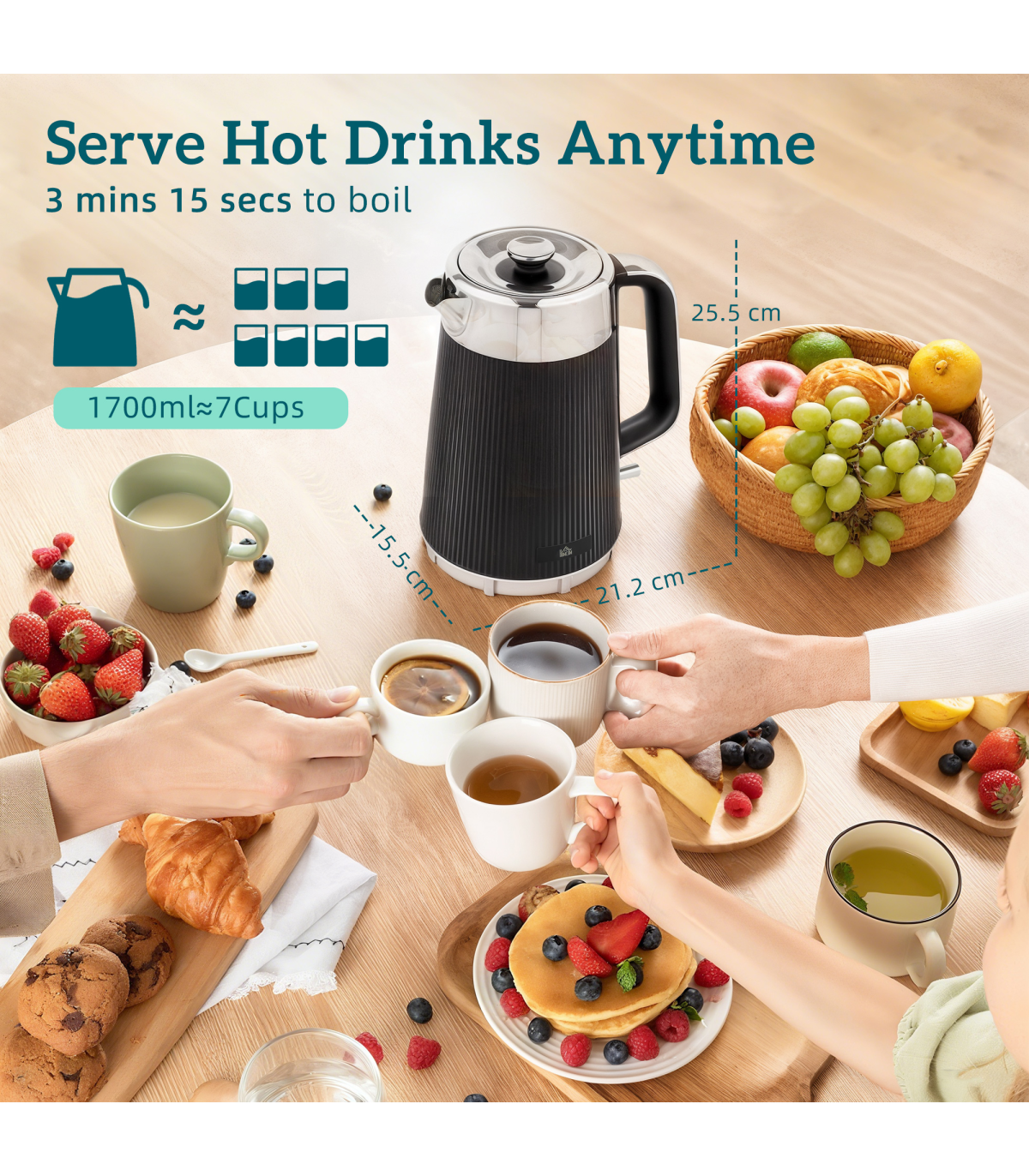 - Boils up to 1.7L in minutes with powerful 3000W - suit for 7 cups