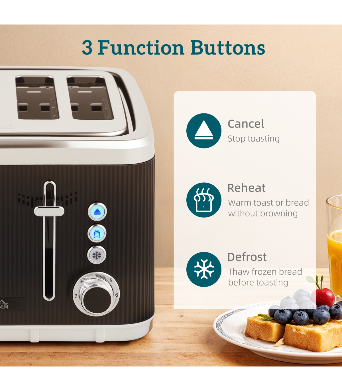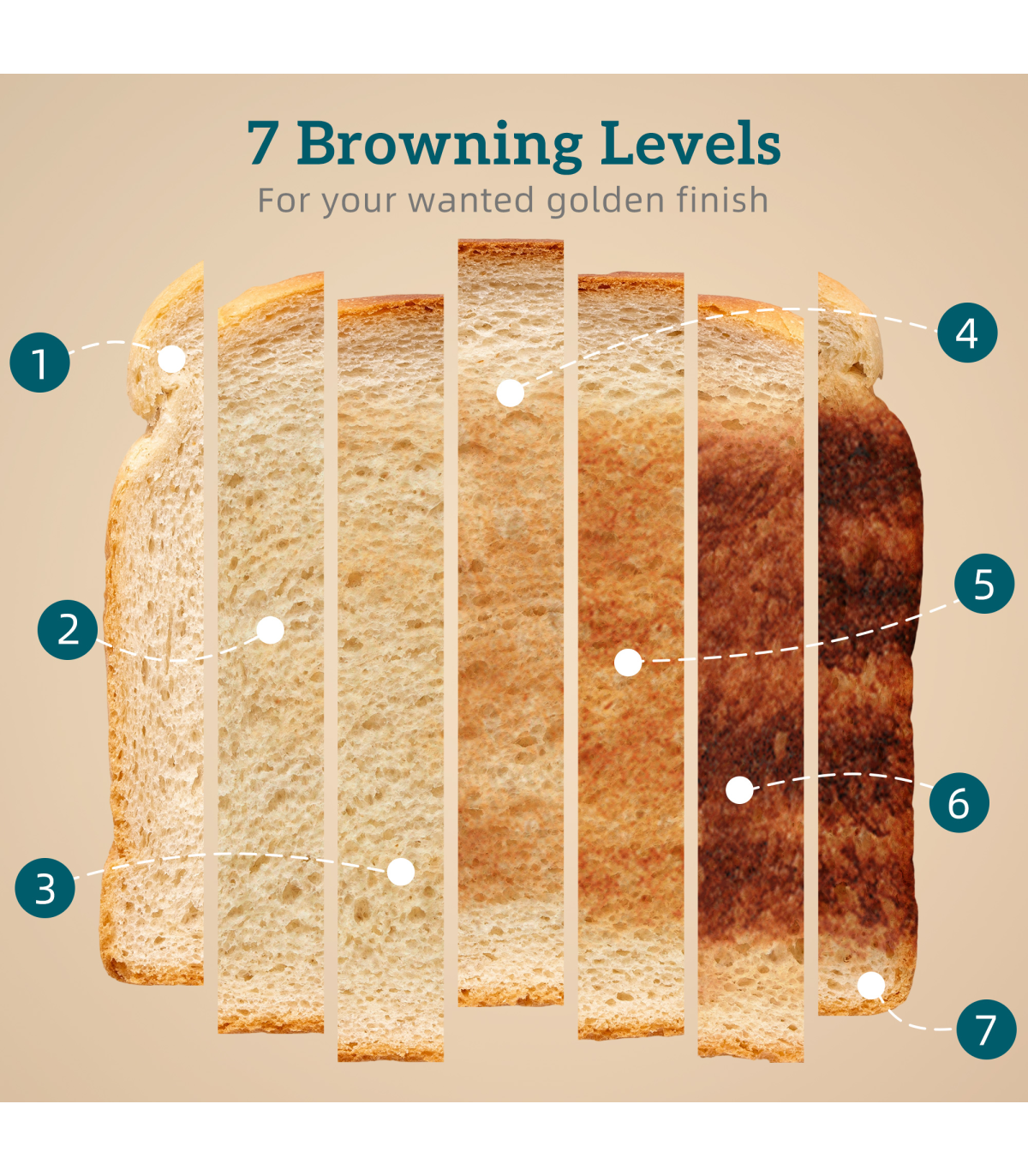 - 4 slots with dual controls, each pair with 7 browning levels and defrost, reheat and cancel