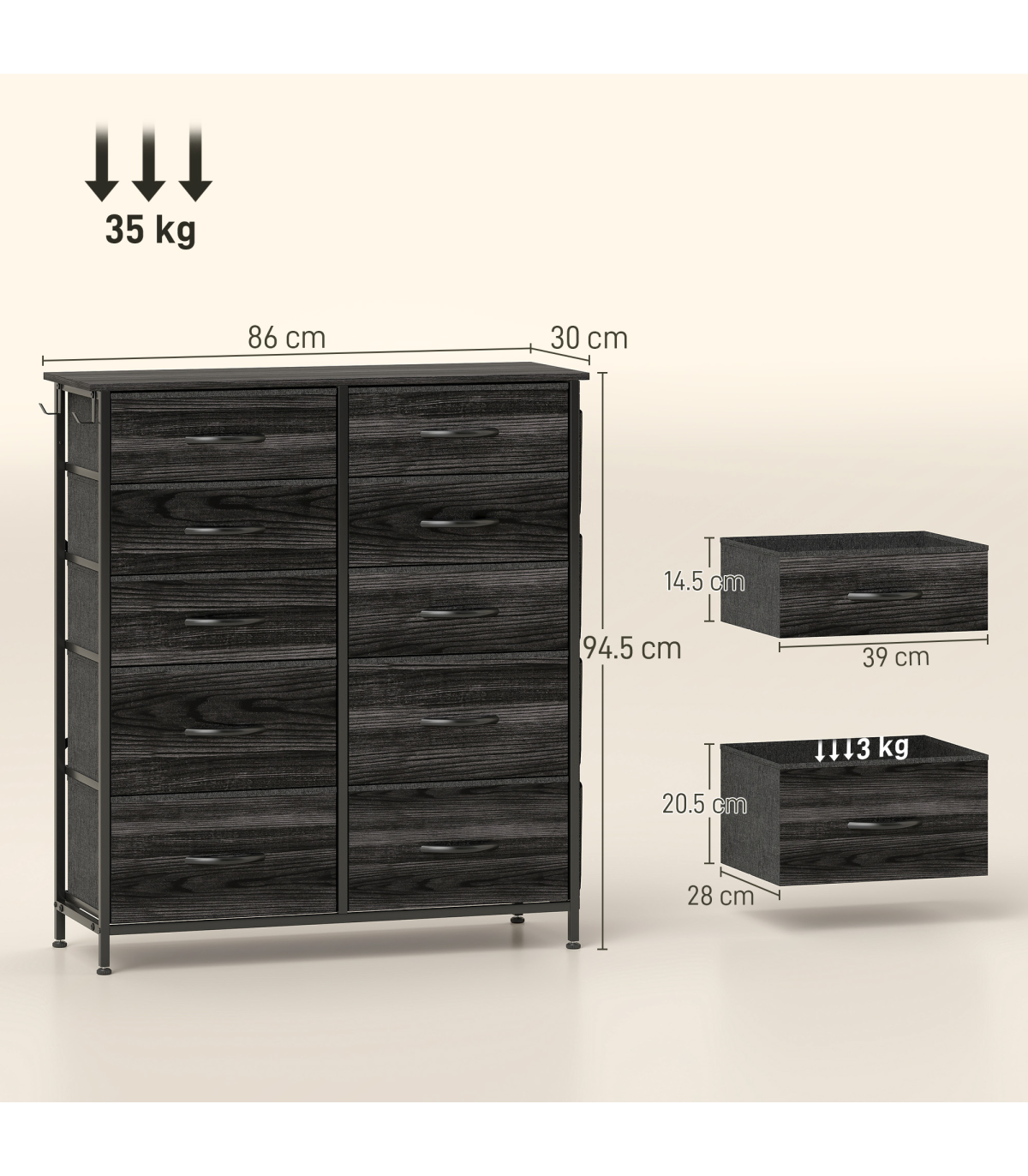- Maximum Load: 10 kg (Top), 3 kg (Each Drawer), 20 kg (Total)