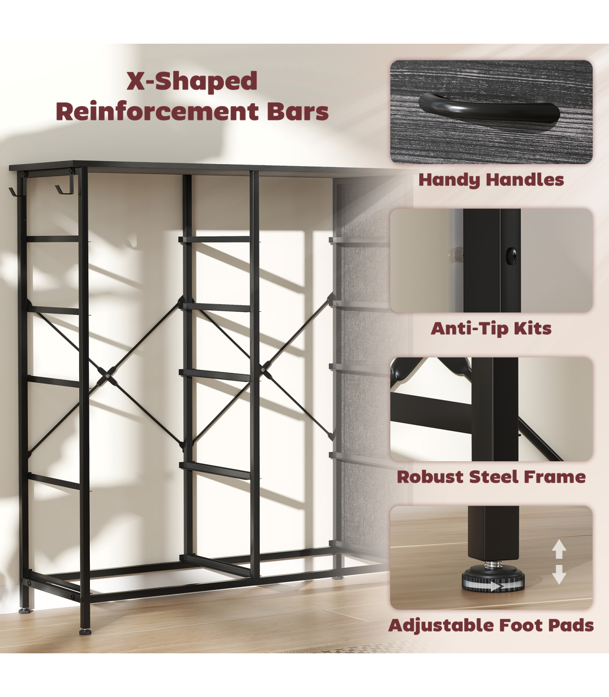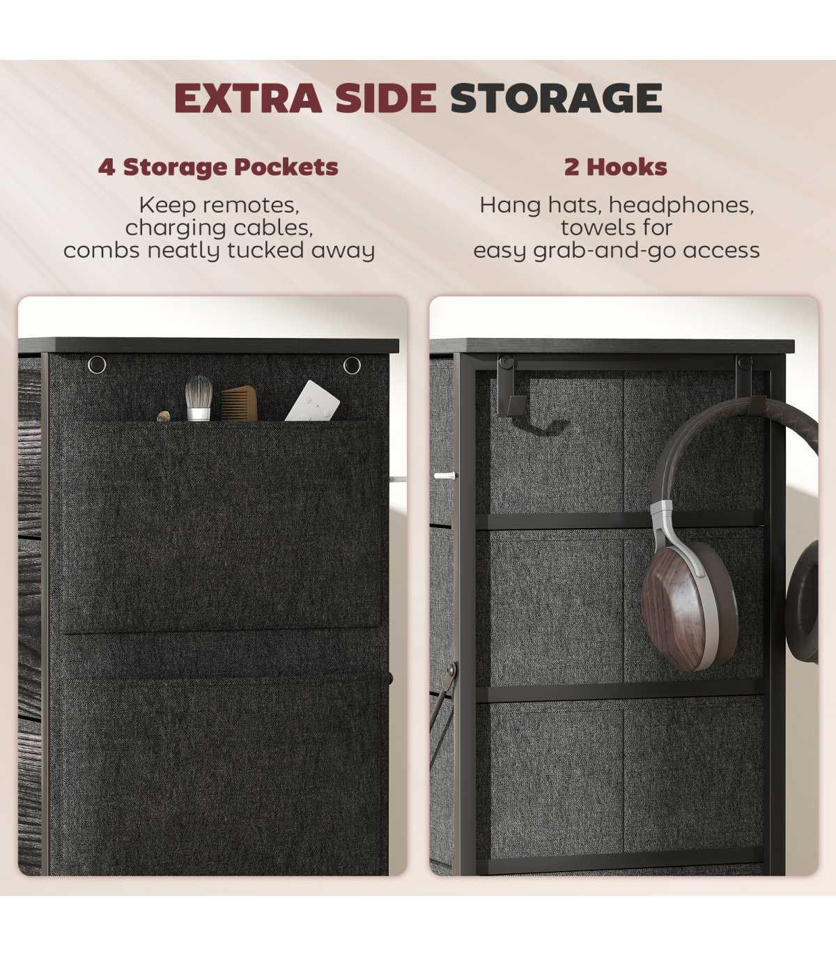 - Four side pockets and two hooks also included for extra holding and hanging room