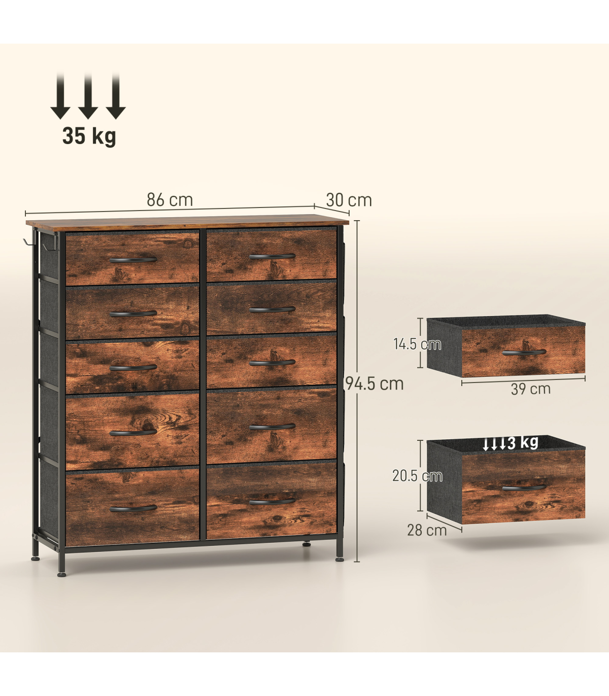 - Six small and four large drawers: plenty of room for storing and organising clothes