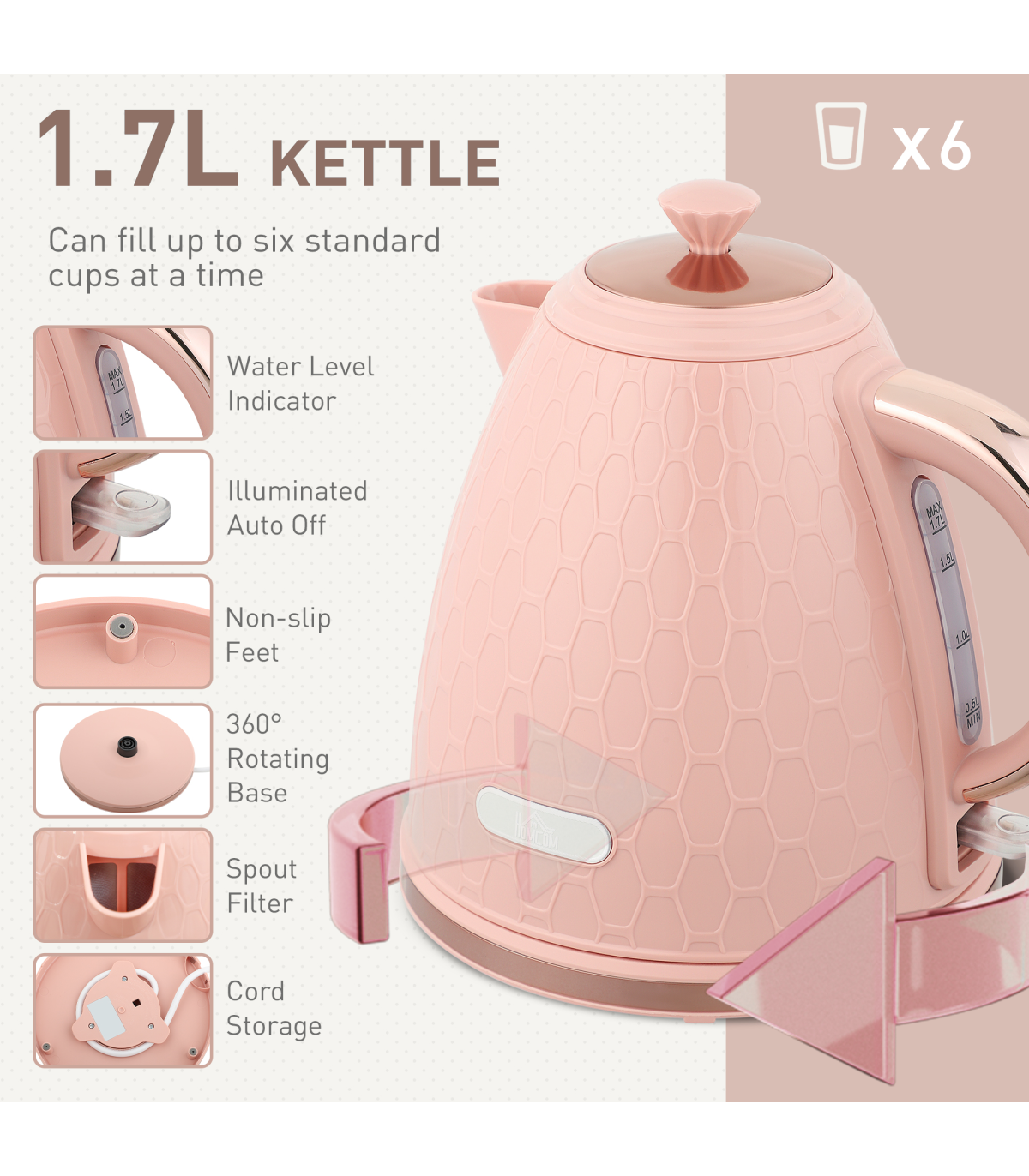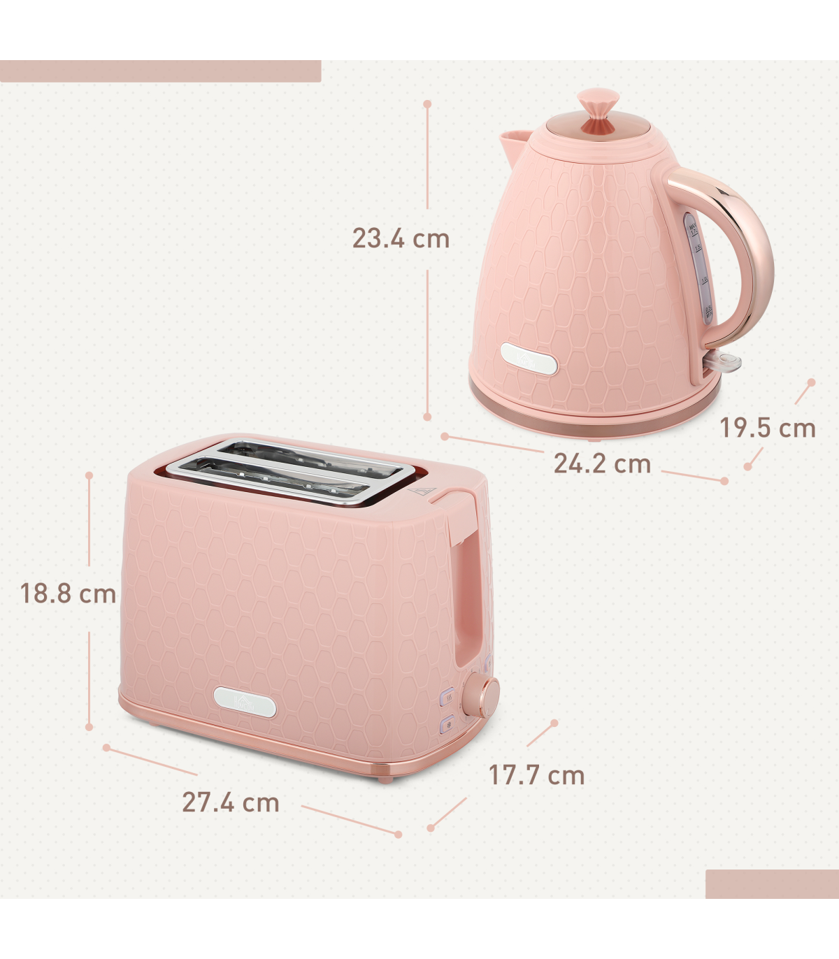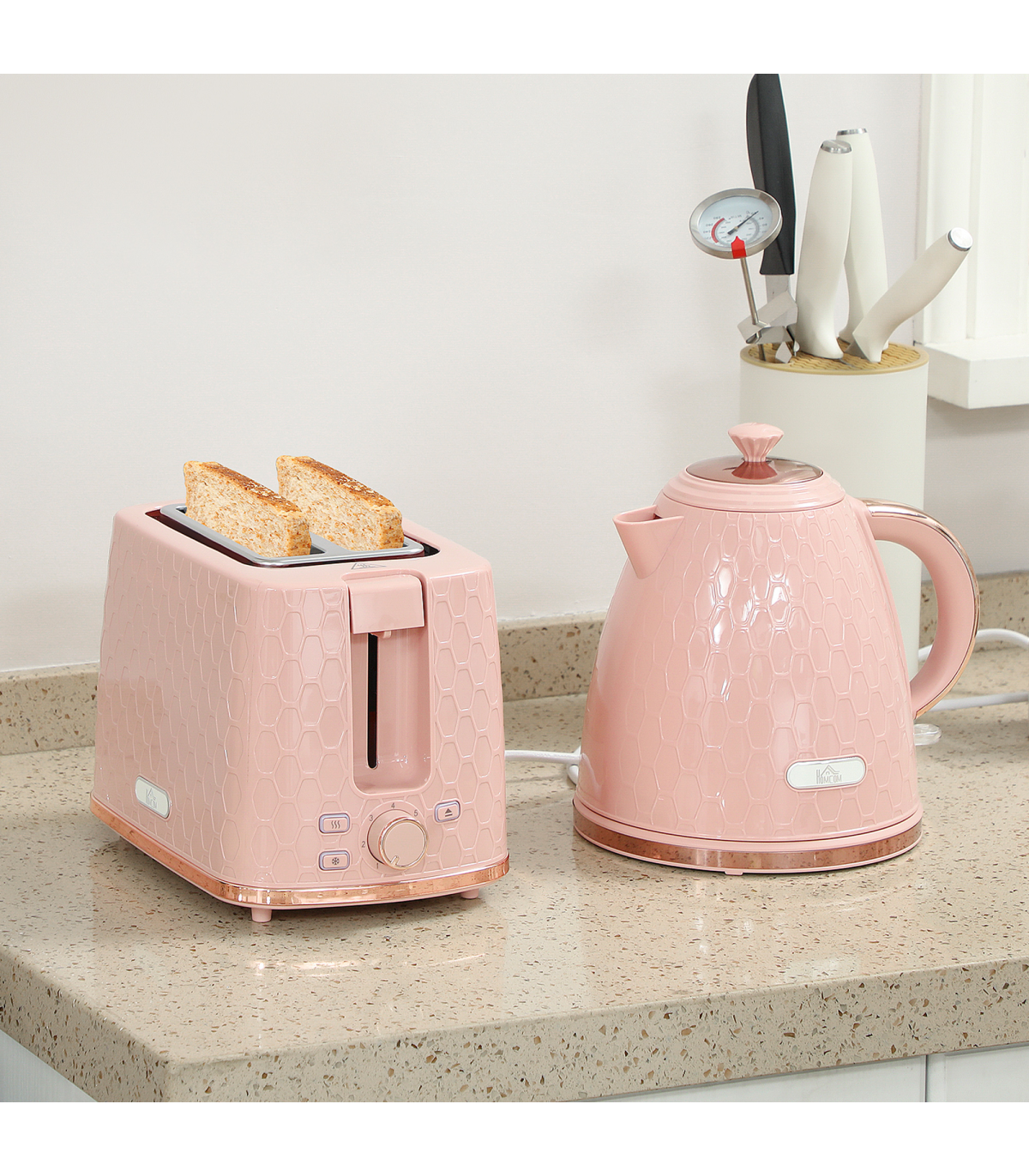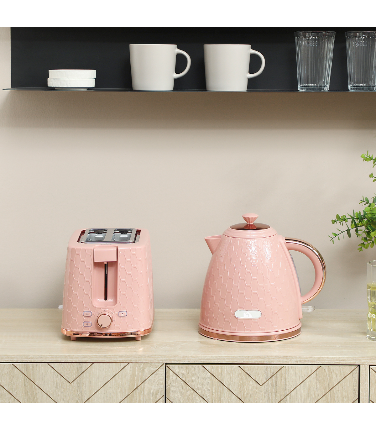 - 1.7L fast boil kettle and matching two-slice toaster. Stylish honeycomb design