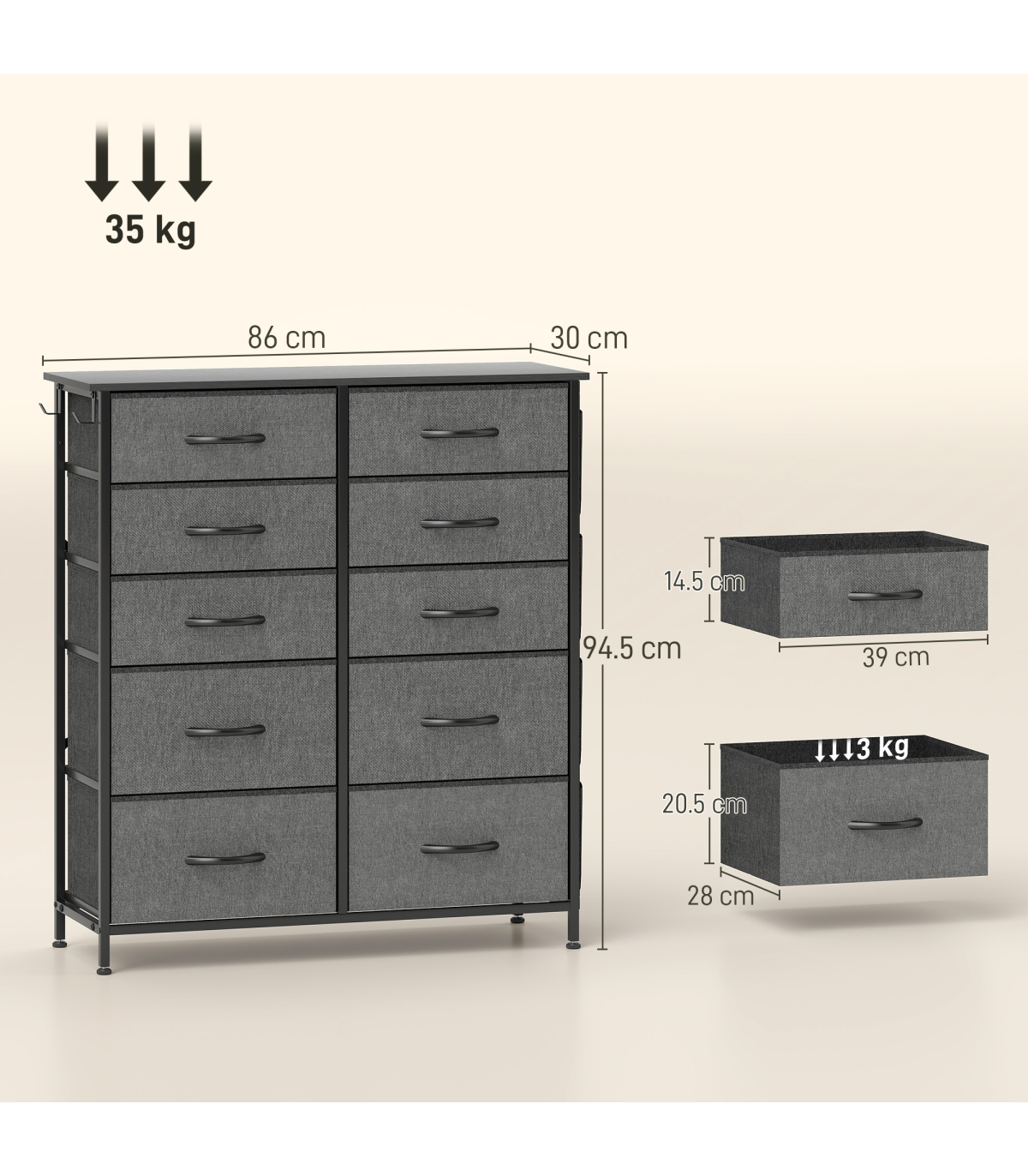 - Six small and four large drawers: plenty of room for storing and organising clothes