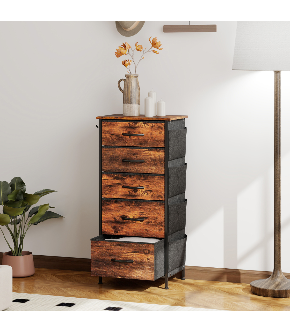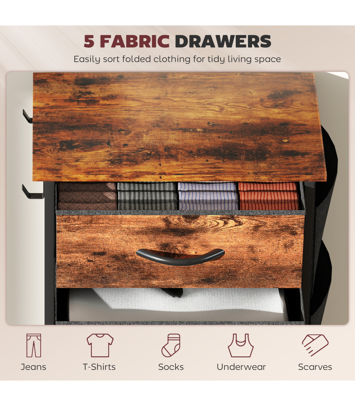 - Three small and two large drawers: plenty of room for storing and organising clothes