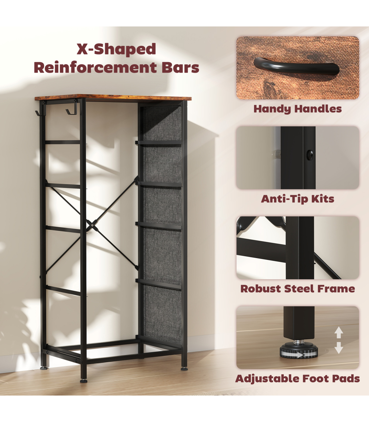 - Anti-tipping kit included to safely secure to a wall