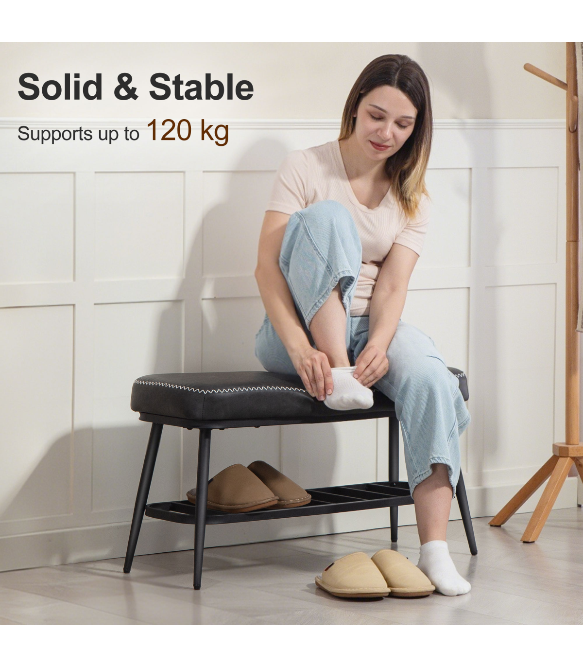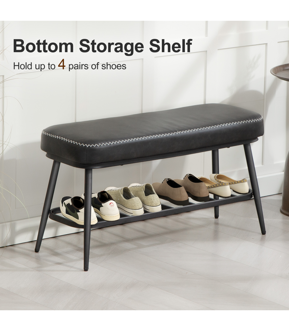 - Bottom storage shelf neatly holds four pairs of shoes, decluttering your entryway