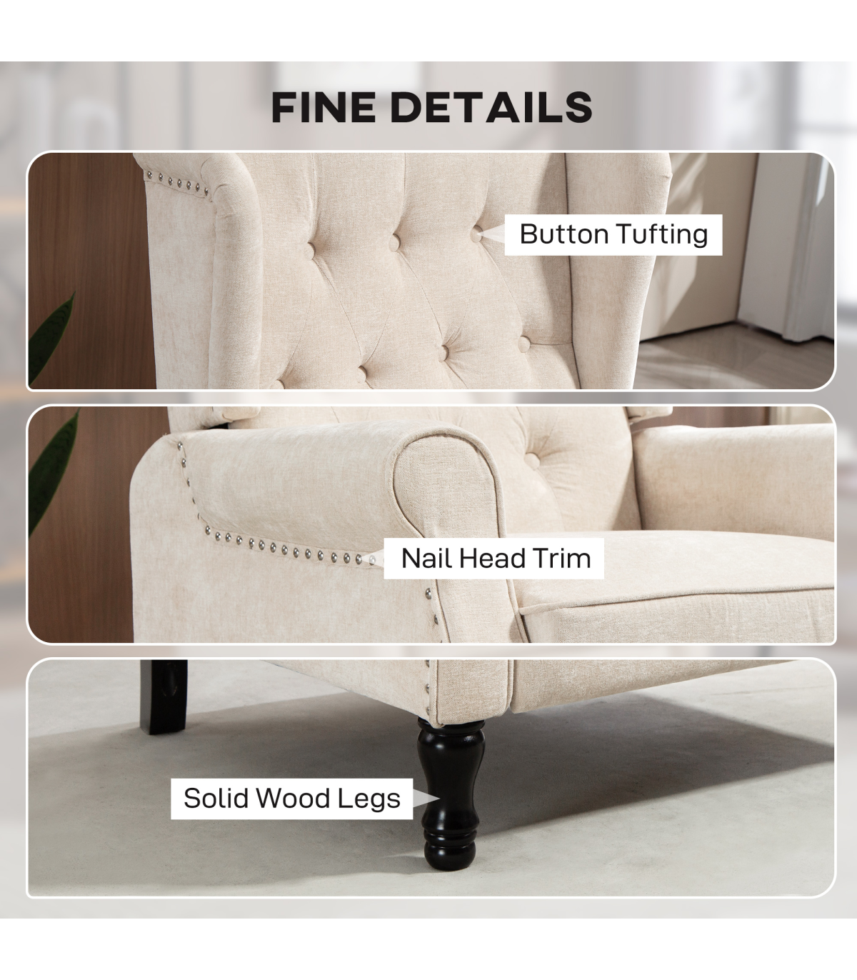 - Tufted design on back for a vintage look