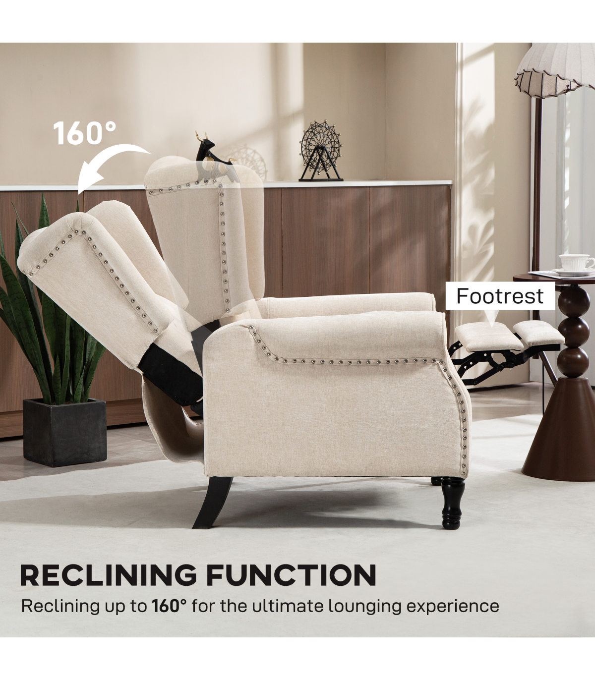 - Back manually reclines up to 150° angle, with a retractable footrest
