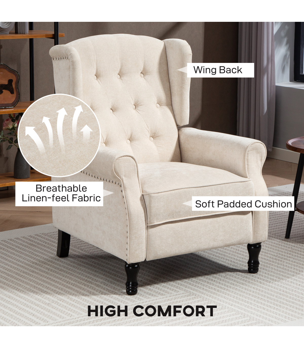- Smooth linen-look upholstery is easy to clean