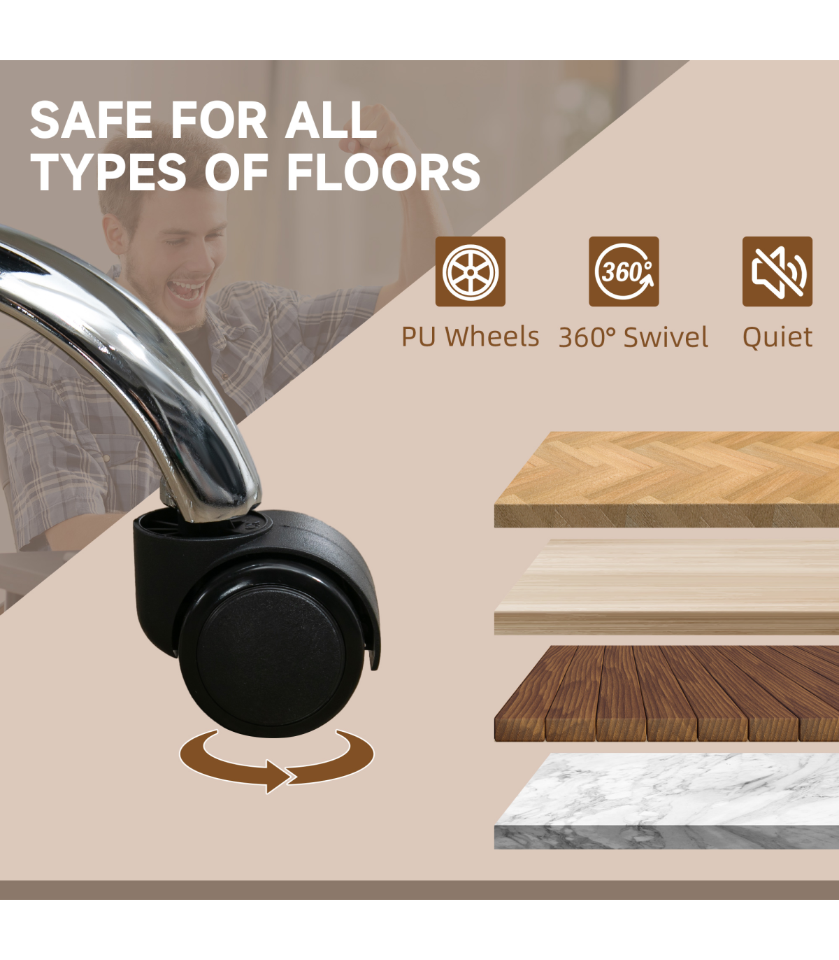 - Move freely on PU wheels designed for all floor types, including hardwood, tile, laminate and slate