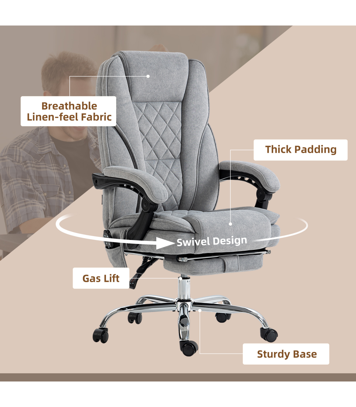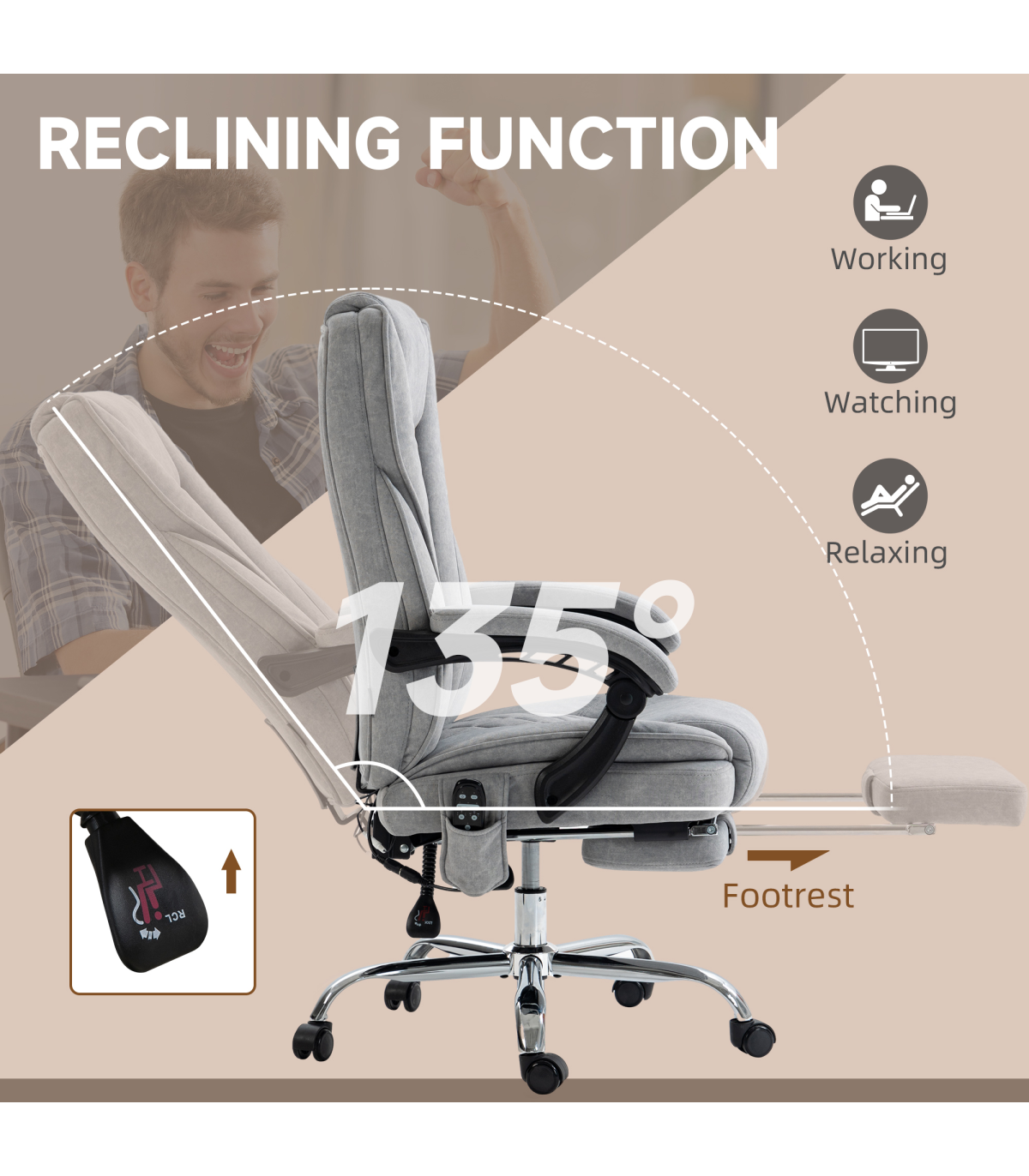 - Recline up to 135° and extend the footrest to rest and stretch during breaks