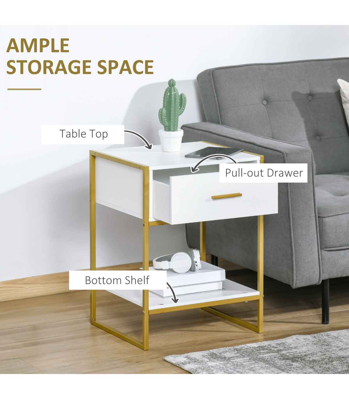 - Steel frame for a strong core, with a matching metal handle on the drawer