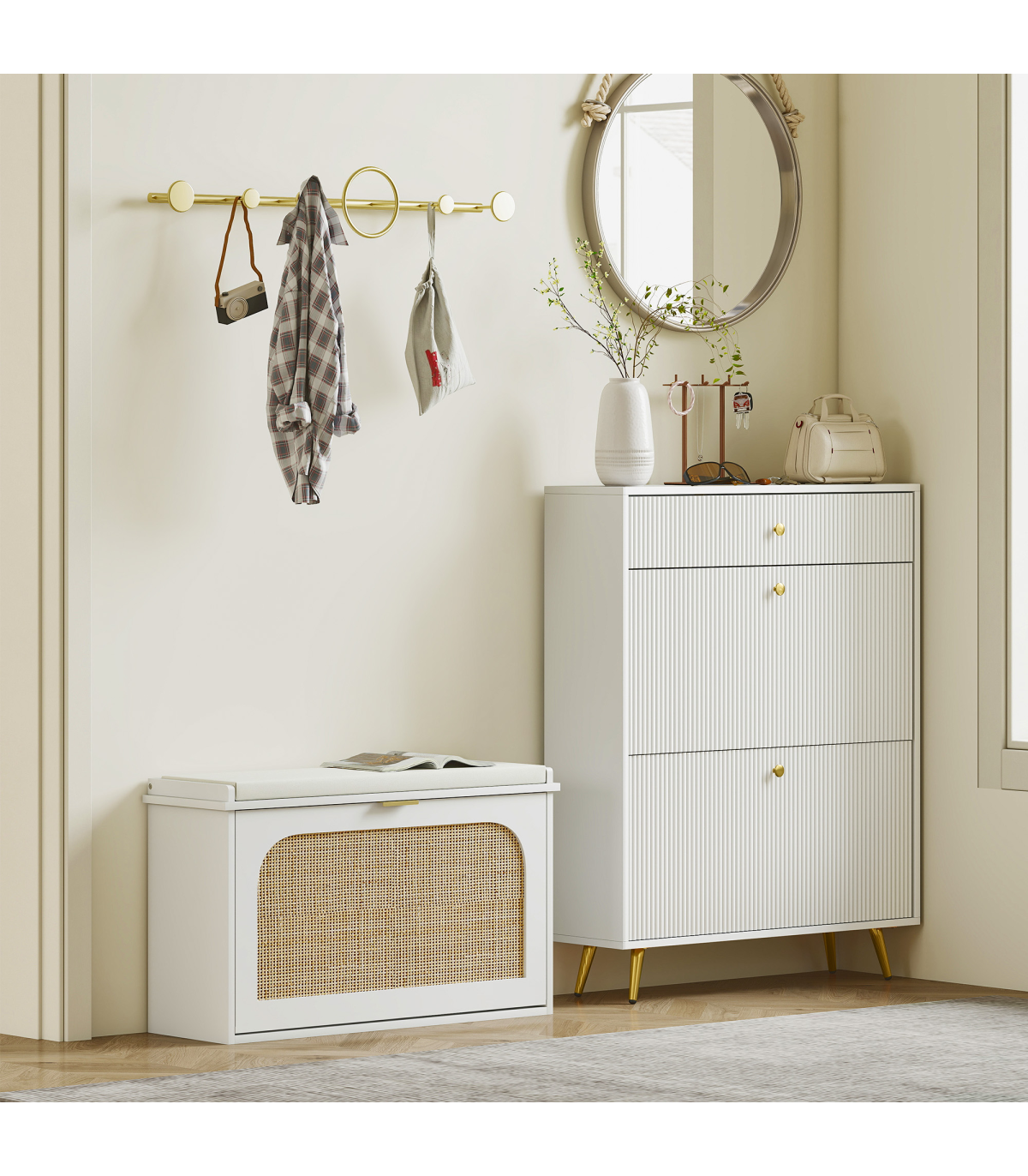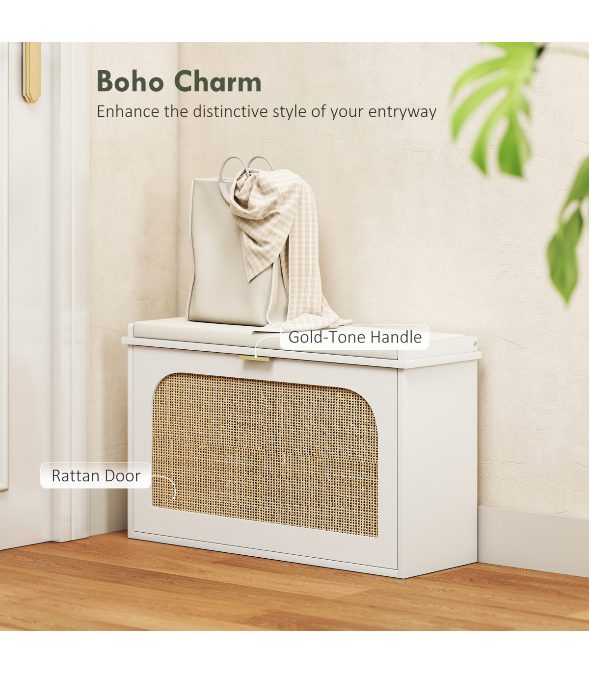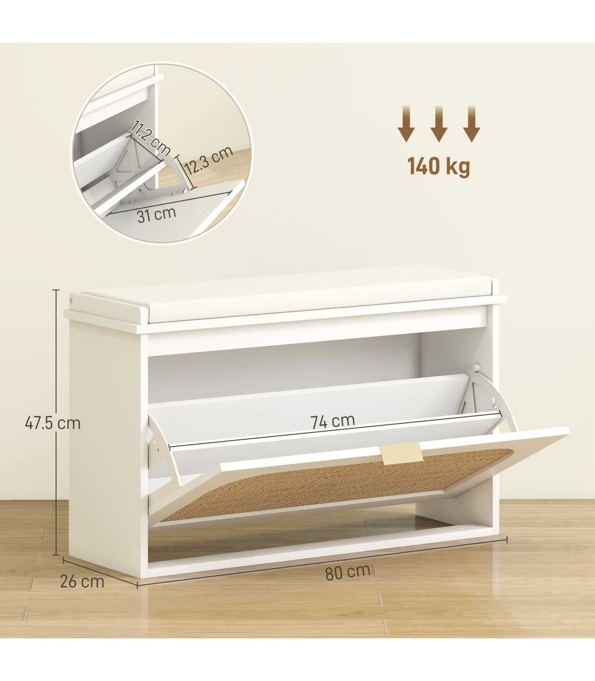 - Thick foam padded cushion wrapped in linen-feel fabric, offers comfortable seating for shoe changing