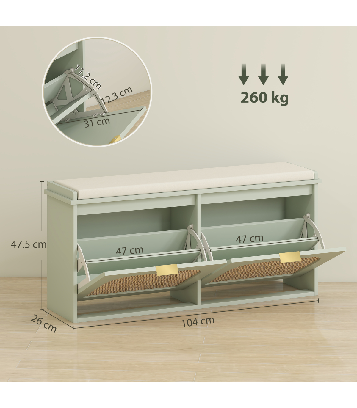 - Made from MDF and particle board, supports up to 260 kg