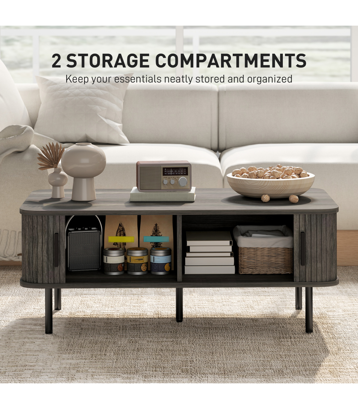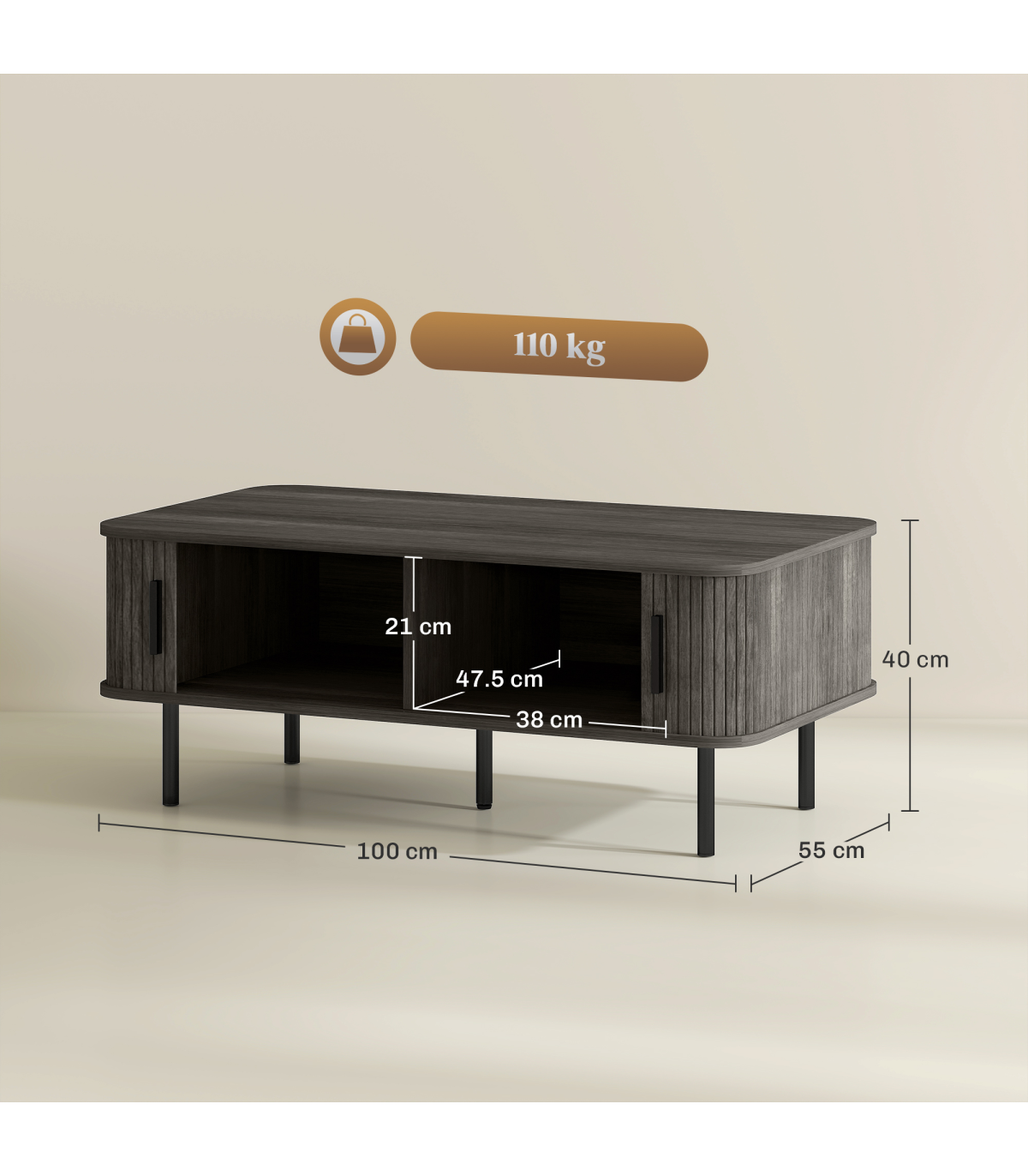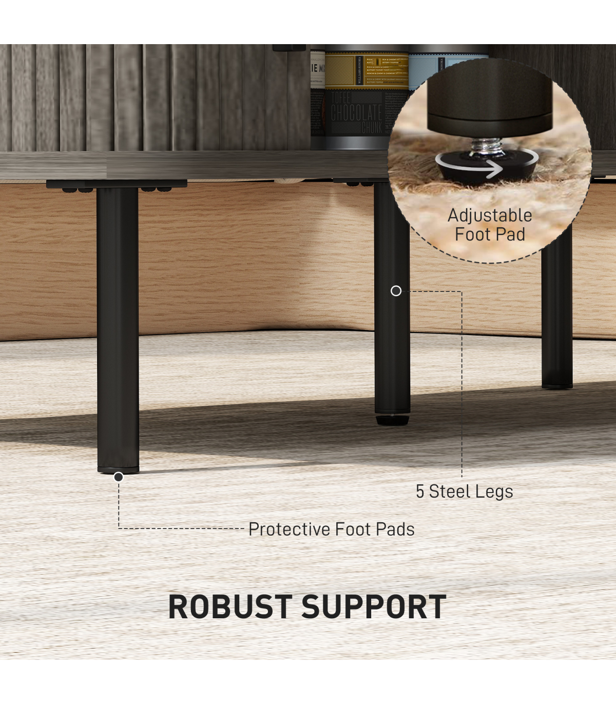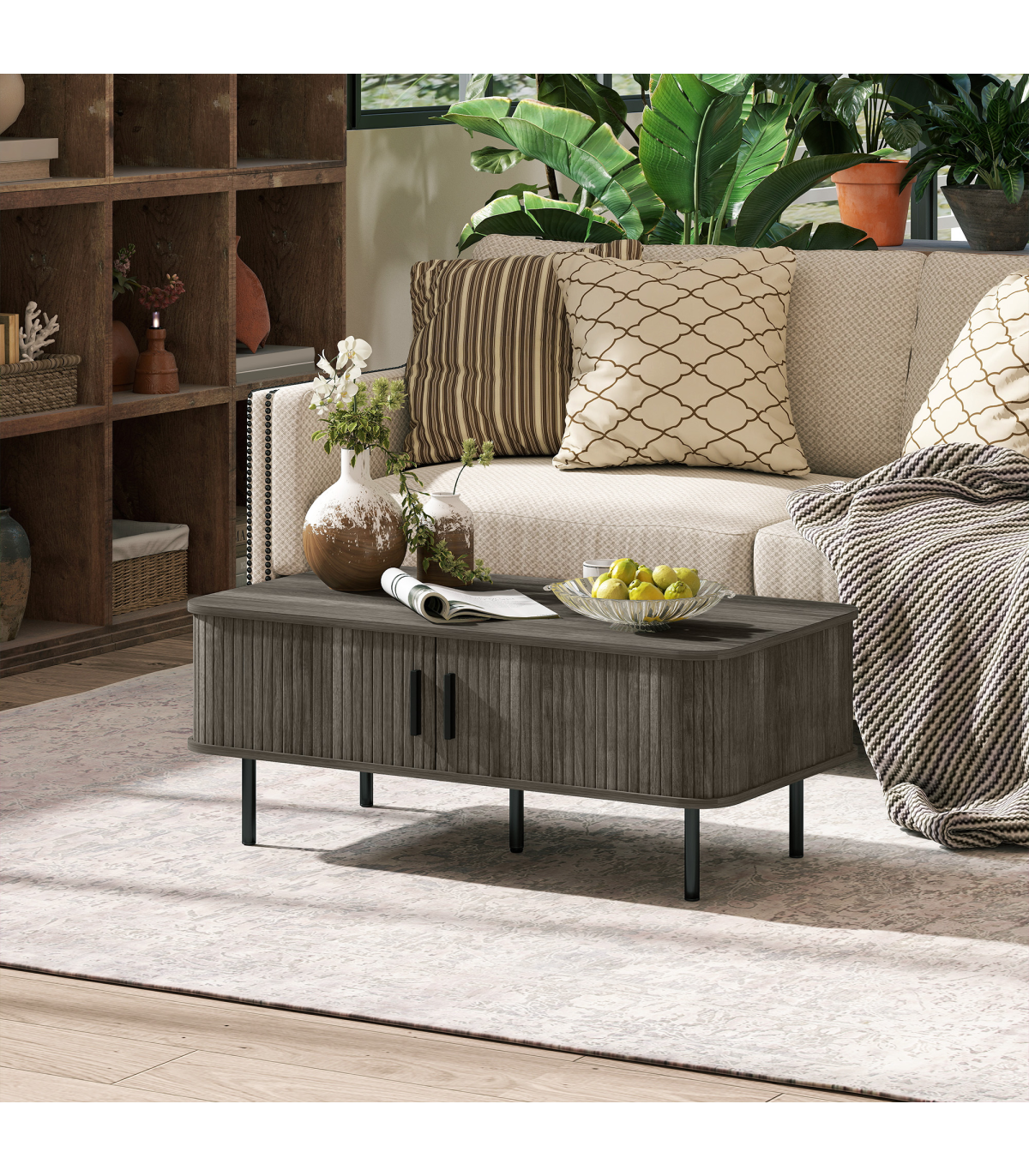 - Mid-Century modern style with slatted tambour doors adds a unique, decorative touch