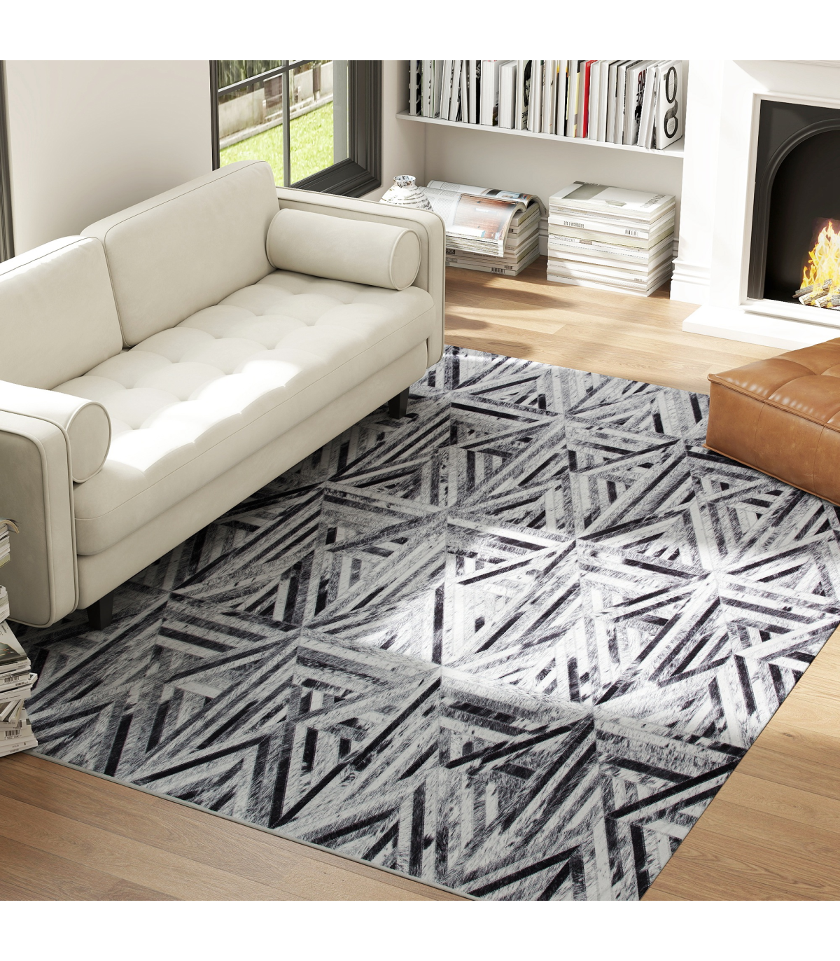 - Heat transfer printed carpet with faux leather patchwork adds modern luxury and durability