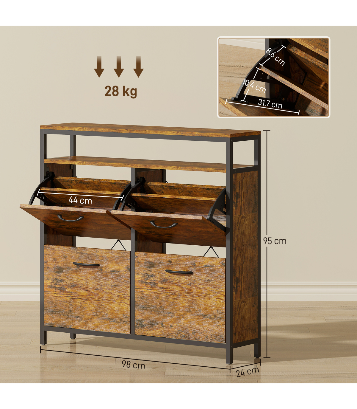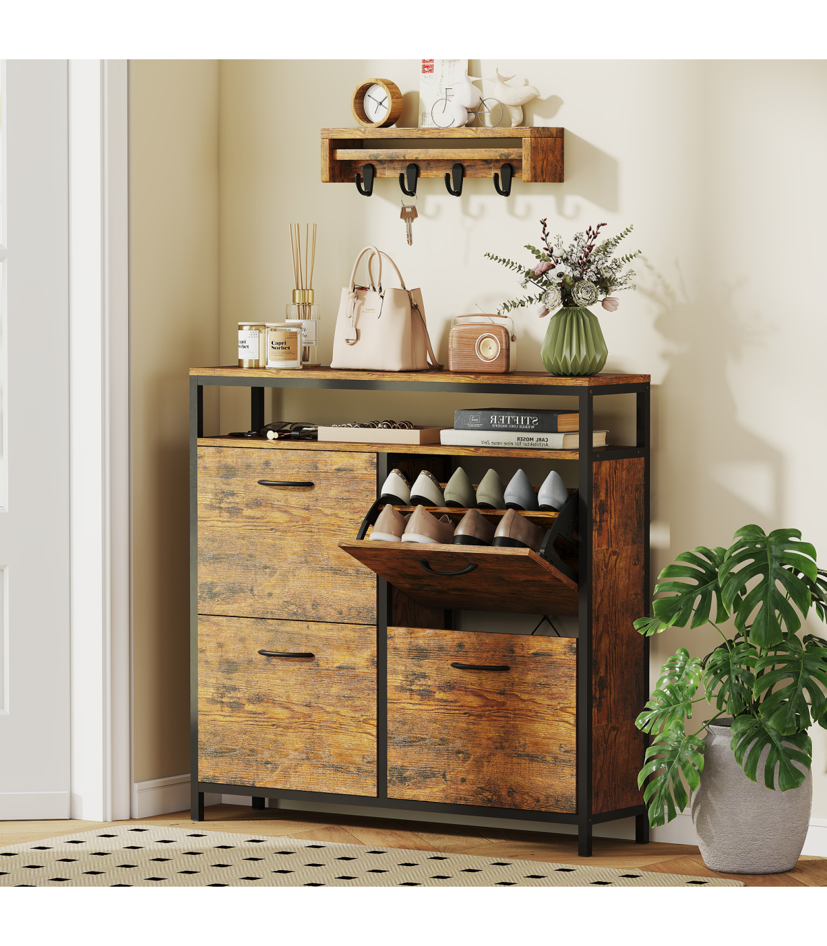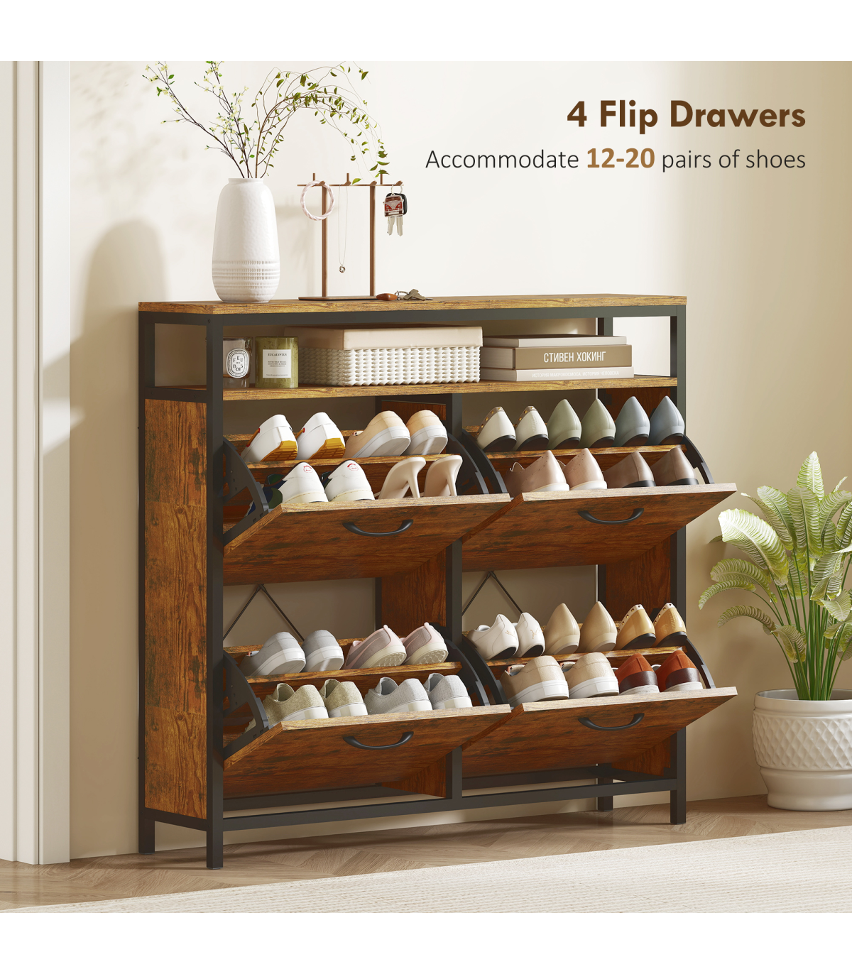 - Four flip drawers hold 12-20 pairs, great for family shoe storage needs