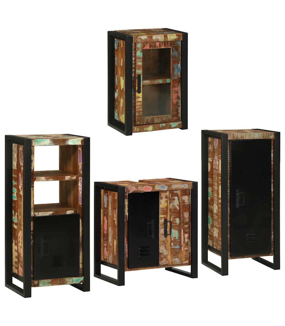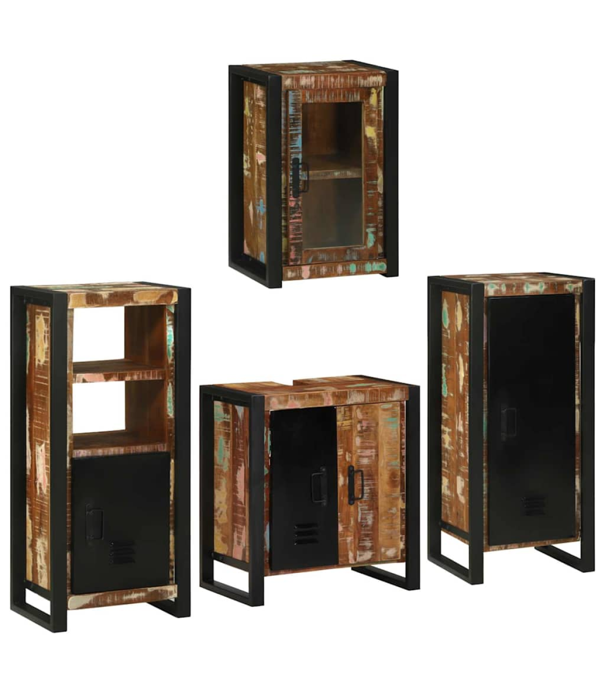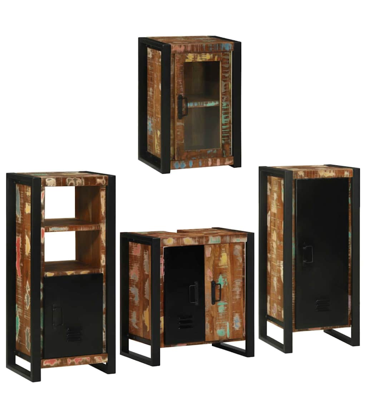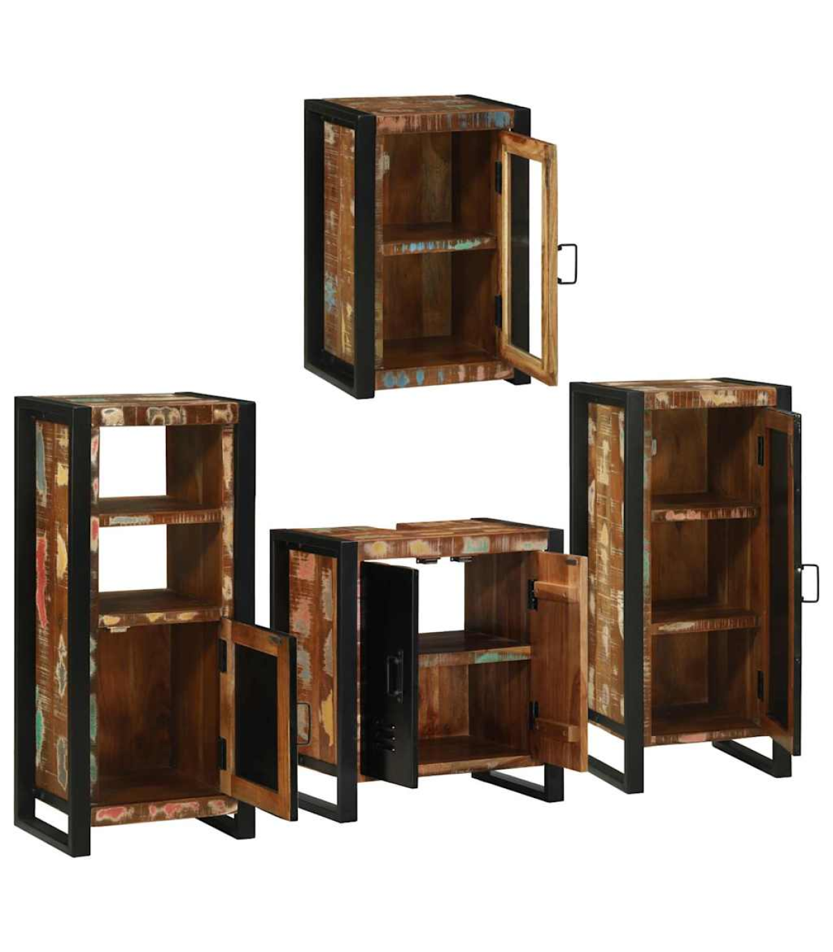Check out this Wooden Bathroom Furniture Set – it blends practicality with rustic charm, making it perfect for jazzing up any bathroom. Its well-crafted rectangular shape shows off the beauty of natural materials, giving your bathroom a warm and inviting feel that balances old-school and new-age styles perfectly. Materials & Build: The set’s got a tough metal frame with a sleek black finish, giving it that structured modern look. The strength of the build ensures it'll last ages, while the rustic design adds a classy touch to any bathroom. Components Included: You'll get a large and a small cabinet, plus a wall-mounted unit, all designed to work together for a neat storage solution. They’re easy to put up on the wall, making ideal use of space, especially if you're in an apartment or a smaller home. Functional Design: The cabinets have smooth flush doors that open quietly, making them easy to use. Their simple but stylish design means you can grab what you need without a hassle while keeping the bathroom tidy. Versatile Use: Perfect for any bathroom, these units can neatly organize towels, toiletries, and other necessities. The rustic style lifts the look of simple bathrooms, providing both beauty and practicality. Care & Maintenance: Keep the furniture looking good by giving it a regular wipe with a dry cloth to catch dust and dirt. Steer clear of harsh chemicals to keep the finish fresh for ages.