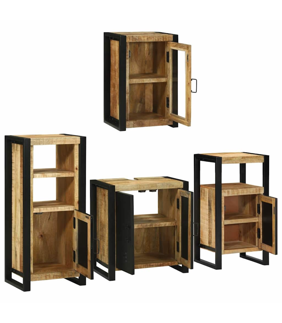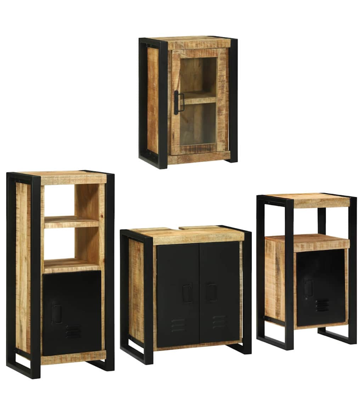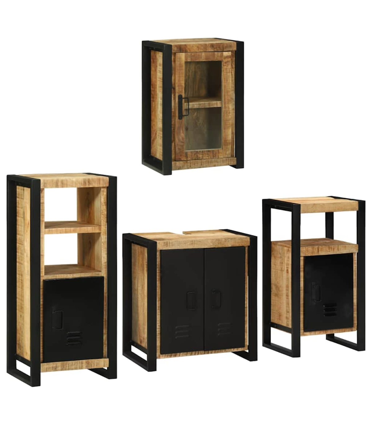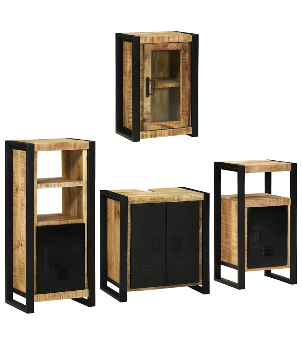 This Bathroom Furniture Set brings a lovely mix of style and practicality to any modern bathroom, giving it a rustic vibe that fits in perfectly with contemporary looks. The distinct style shows off natural beauty while keeping it sleek and tidy. It comes with different pieces, each with its own role, making it a doddle to organise your bathroom stuff. It’s spot-on for those who appreciate both looks and usefulness, effortlessly becoming the star of any bathroom. Modern Rustic Look The rustic vibe of this set enhances any space with its natural beauty. The black frame and warm brown doors add a chic yet rugged touch for those who like traditional mixed with modern style. Streamlined Storage With loads of cabinets, this set gives you loads of storage options. Whether it’s tiny toiletries or big towels, everything fits nicely. The wall-mounted design keeps things tidy and clears up valuable floor space. Sleek Metal Handles These modern bar handles are easy to grip and look great, keeping the unit’s stylish edge. The metal adds a nice touch to the overall look of the furniture. Versatile Cabinetry Comes with a bathroom sink cabinet to keep your sink area neat, plus wall-mounted cabinets for those everyday essentials without taking up floor space. Care Instructions Keeping it nice and tidy is simple – just wipe with a dry cloth. This easy upkeep helps keep its rustic charm and stylish look over time.