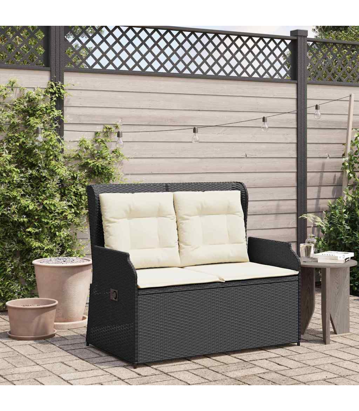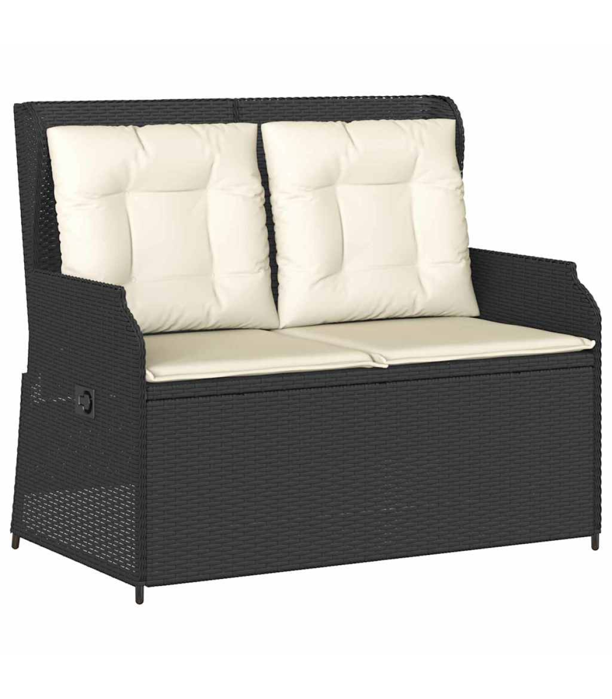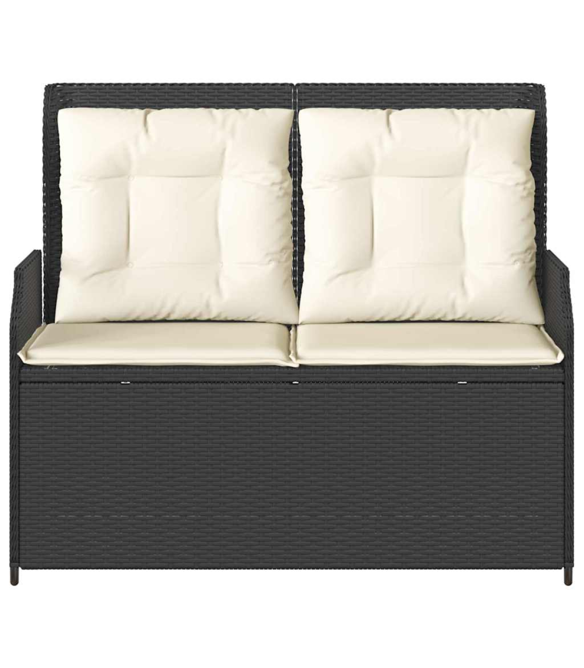 This reclining garden bench is the perfect mix of modern style and practicality. It's spot on for sprucing up your indoor or outdoor spaces. With its sleek design, it looks fab whether in the garden or living room, and offers a comfy place to relax. Adjustable Backrest - With a multi-position backrest, this bench lets you pick your comfy angle easily. It's just right for reading, lounging, or taking a breather on the terrace or in the garden. Robust Frame - The powder-coated steel frame makes this bench super stable and built to last. You can count on it to hold up against day-to-day wear and tear. Weather Resistant - Made from poly rattan, it’s tough against weather changes. No matter if it’s sunny or drizzling, the bench keeps looking good and doing its job, making it a great fit for indoors and outdoors. Minimalistic Design - With clean lines and a simple shape, it fits in with any decor. The black legs bring a cool touch, making it versatile for any home. Easy Maintenance - The cushion has a handy zipper, so you can whip it off and clean it in no time. This easy care keeps your bench looking fresh and welcoming for years. Maximum 110 kg per seat. Be aware of the risk of open fires and other sources of strong heat in the vicinity of the product.