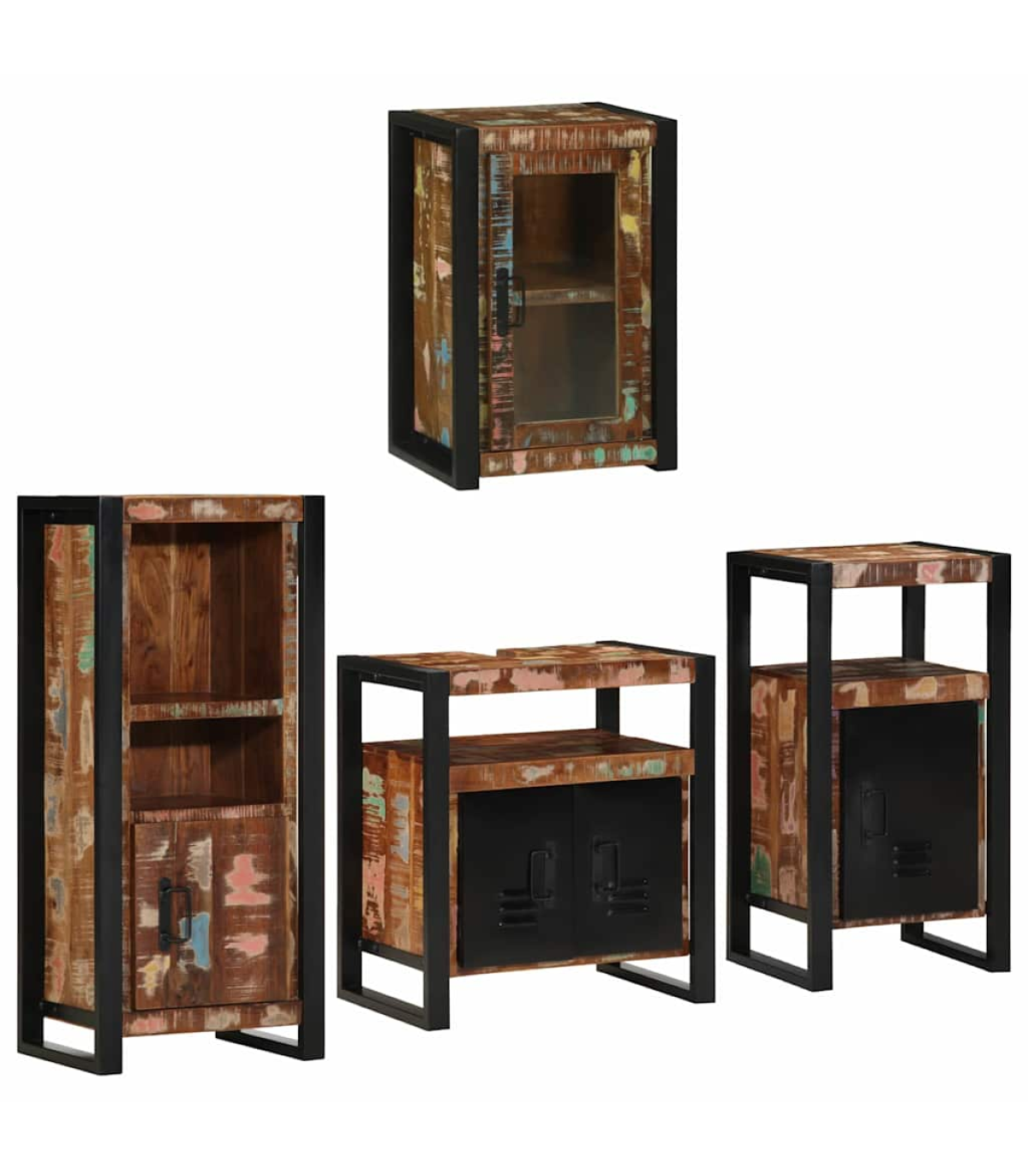 This Wooden Bathroom Furniture Set gives you a great mix of rustic charm and modern convenience in a sleek design. It’s perfect for bathrooms, bringing a touch of natural beauty while keeping things practical. The wall-mounted style saves space and adds a stylish touch, making it ideal for anyone wanting to maximise their bathroom without losing out on looks. Strong Materials The blend of wood and sturdy metal gives you durability and good looks, making sure it sticks around and serves you well. Wall-Mount Space Saver The wall-mounted design is a clever way to save floor space while keeping your place looking modern and minimalist. Great Storage With several cabinets all designed to fit your bathroom essentials, this set helps you stay organised and keeps clutter at bay. Rustic Touches The unfinished wood brings a warm vibe that makes your bathroom feel homey and relaxed. Easy Care Just wipe it down with a dry cloth to keep it looking sharp—perfect for the busy household.