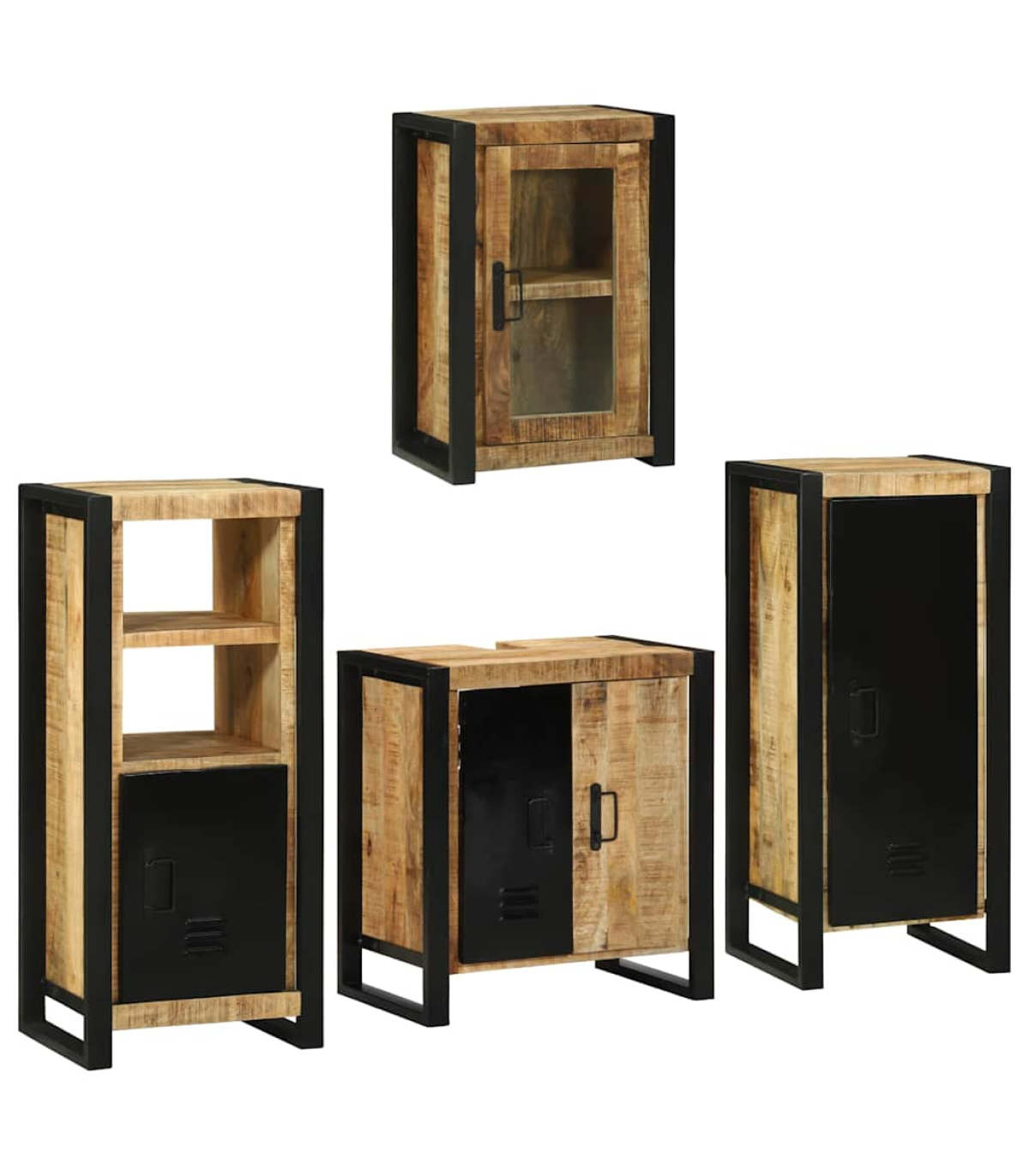 Check out this Wooden Bathroom Furniture Set – it blends practicality with rustic charm, making it perfect for jazzing up any bathroom. Its well-crafted rectangular shape shows off the beauty of natural materials, giving your bathroom a warm and inviting feel that balances old-school and new-age styles perfectly. Materials & Build: The set’s got a tough metal frame with a sleek black finish, giving it that structured modern look. The strength of the build ensures it'll last ages, while the rustic design adds a classy touch to any bathroom. Components Included: You'll get a large and a small cabinet, plus a wall-mounted unit, all designed to work together for a neat storage solution. They’re easy to put up on the wall, making ideal use of space, especially if you're in an apartment or a smaller home. Functional Design: The cabinets have smooth flush doors that open quietly, making them easy to use. Their simple but stylish design means you can grab what you need without a hassle while keeping the bathroom tidy. Versatile Use: Perfect for any bathroom, these units can neatly organize towels, toiletries, and other necessities. The rustic style lifts the look of simple bathrooms, providing both beauty and practicality. Care & Maintenance: Keep the furniture looking good by giving it a regular wipe with a dry cloth to catch dust and dirt. Steer clear of harsh chemicals to keep the finish fresh for ages.