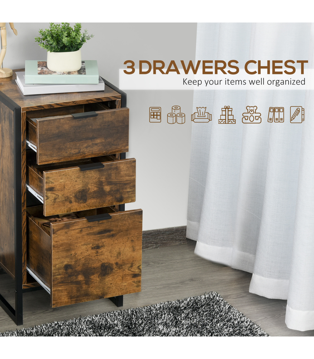 - Features three drawers, giving you plenty of storage space